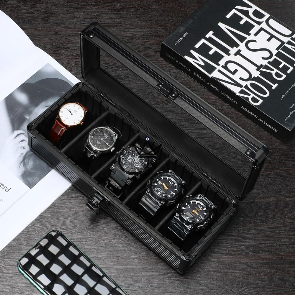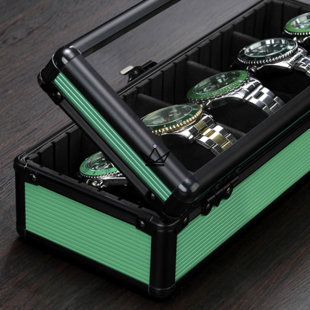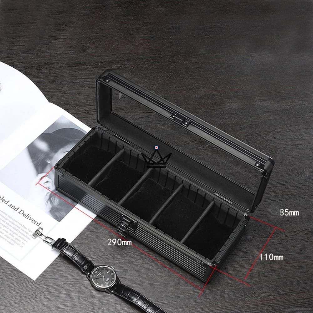 Investieren Sie in eine erstklassige Aufbewahrungslösung für Ihre Uhren. Entscheiden Sie sich für unsere Aufbewahrungsbox aus Aluminium und verleihen Sie Ihrer Sammlung einen Hauch von Eleganz.
