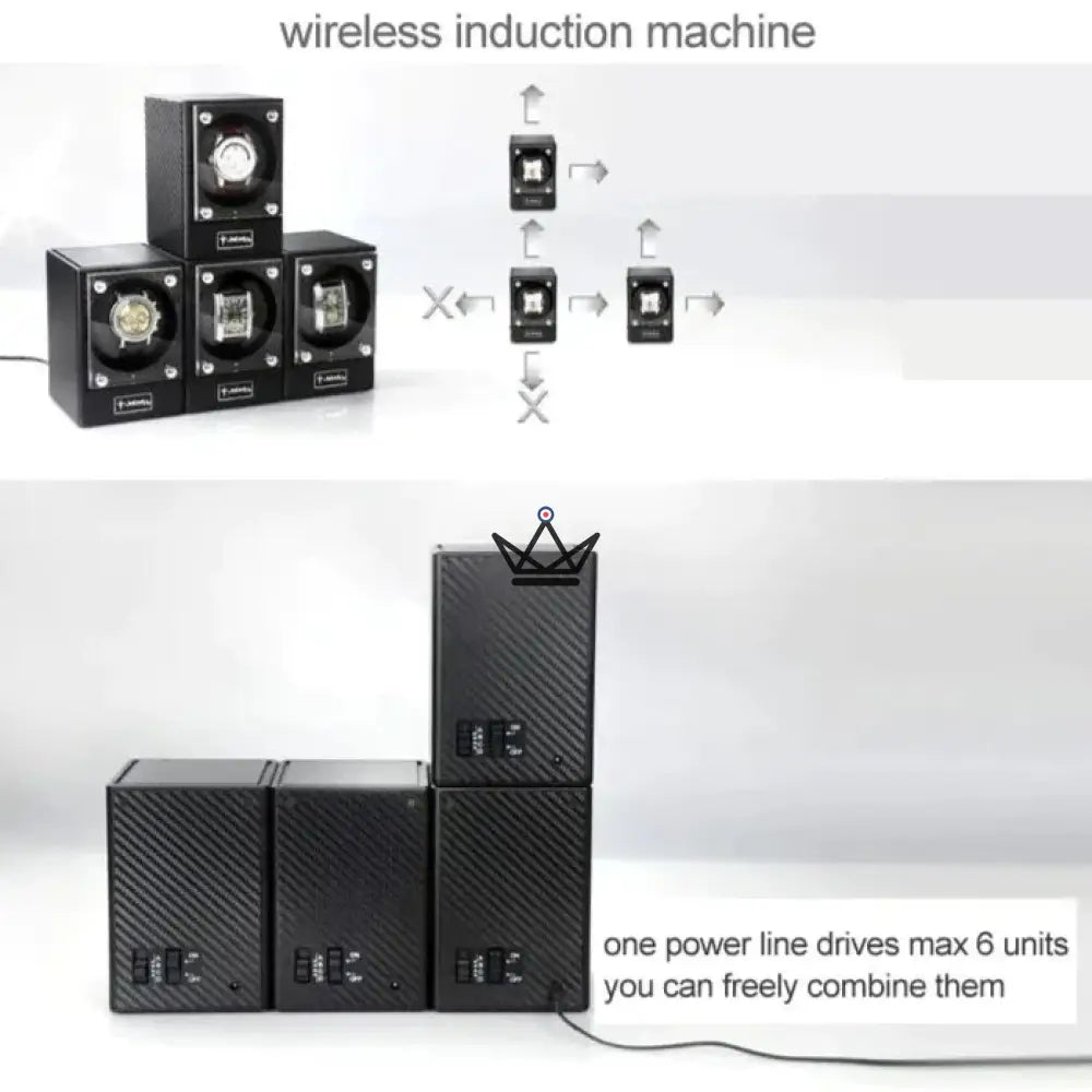 Eines der herausragenden Merkmale dieses Uhrenbewegers ist seine kabellose Induktionsladetechnologie. Es ermöglicht Ihnen, bis zu sechs Boxen übereinander oder nebeneinander zu stapeln und dabei nur eine Box anzuschließen. Mit dieser praktischen Funktion können Sie Ihre Uhrensammlung erweitern, ohne sich Gedanken über Platz oder Steckdosen machen zu müssen. Es ist eine clevere Lösung für begeisterte Sammler.