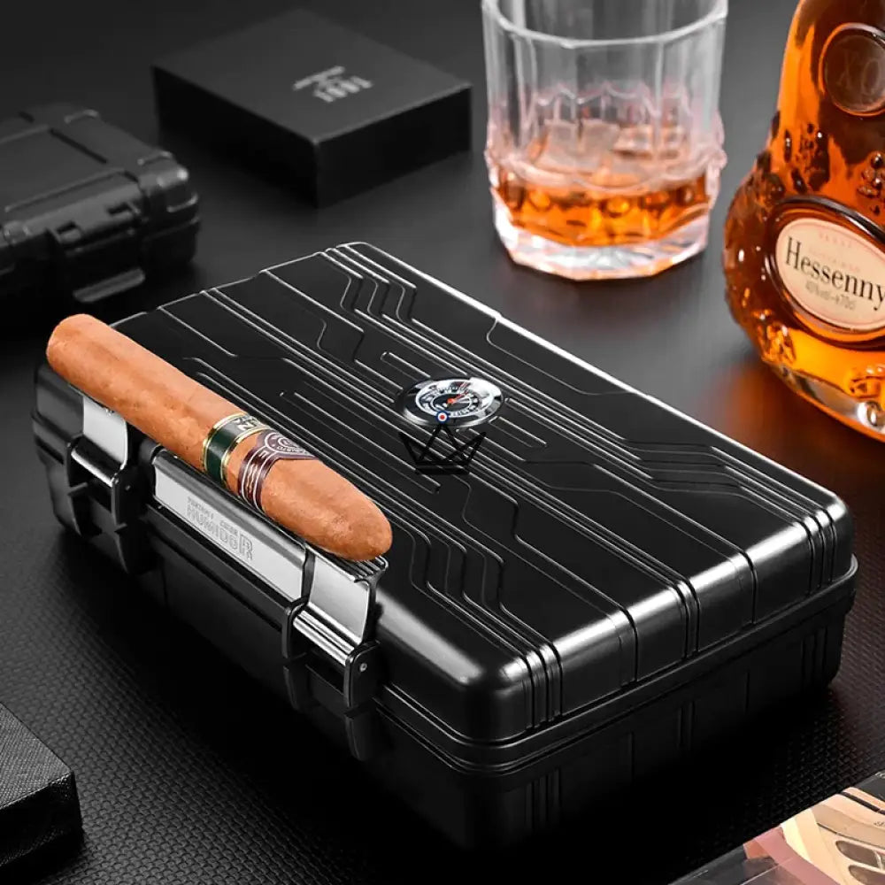 Entdecken Sie den stoßfesten Reisehumidor, der Ihre Zigarren auf Reisen schützt. Dieser kompakte und langlebige Humidor besteht aus stoßfestem LDPD-Material und bietet so zusätzlichen Schutz für Ihre Zigarren vor Stößen und Stößen.