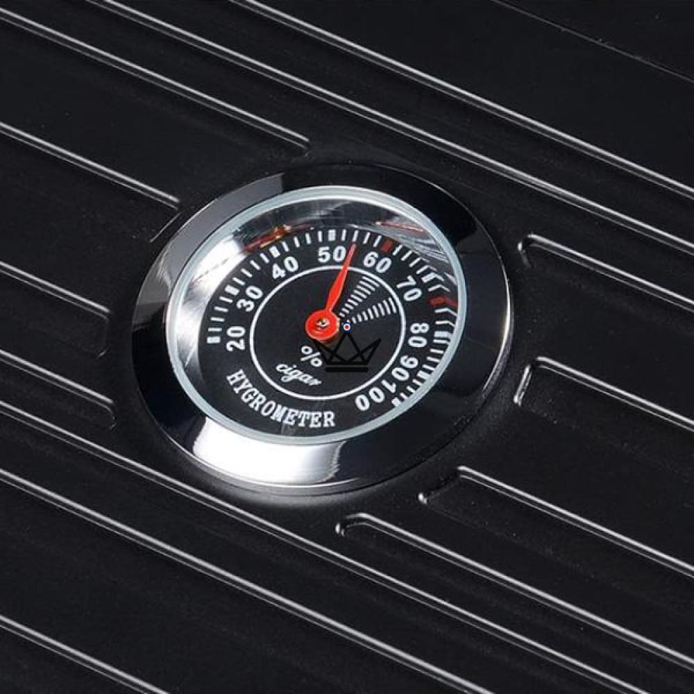 Eines der wesentlichen Merkmale dieses Reisehumidors ist sein eingebautes Hygrometer, mit dem Sie die Luftfeuchtigkeit im Inneren des Humidors überwachen können. Dadurch können Sie sicherstellen, dass Ihre Zigarren unter optimalen Bedingungen gelagert werden und ihre Frische und ihr Aroma erhalten bleiben.