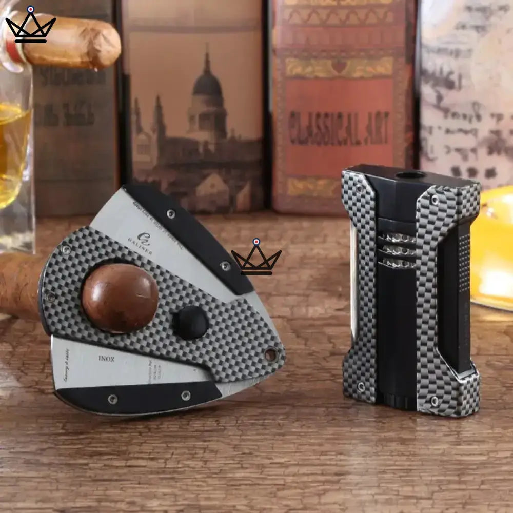 4. Carbon Nyfe-Version : Die Carbon Nyfe-Version repräsentiert den Höhepunkt moderner Eleganz. Zusätzlich zum CARBON-Humidor ist er mit einem Feuerzeug und einem Zigarrenschneider aus hochwertiger Kohlefaser aus unserer Nyfe-Kollektion ausgestattet. Dies ist das ideale Set, um Cohiba-Zigarren mit einem Hauch von modernem Luxus zu genießen.