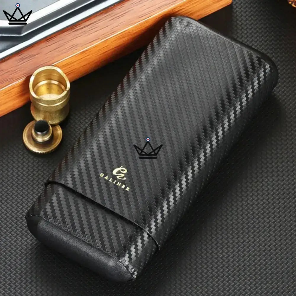 2. Holzversion : Für den Zigarrenliebhaber, der sich einen Hauch von Exklusivität wünscht, bietet diese Version den CARBON Zigarren-Humidor sowie das CARBON WOOD Reise-Zigarrenetui für drei Zigarren. Diese Kombination vereint die Innovation von Carbon mit der Eleganz von Holz und bietet dem modernen Reisenden ein Gleichgewicht zwischen fortschrittlicher Ästhetik und Praktikabilität.