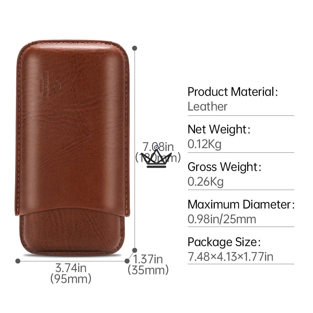 Erhältlich in der 3-Zigarren-Größe (18 x 9,5 x 3,5 cm) können Sie bis zu 3 Zigarren mit einem Durchmesser von 25 mm aufnehmen. So können Sie Ihre Lieblingszigarren sicher überallhin mitnehmen.