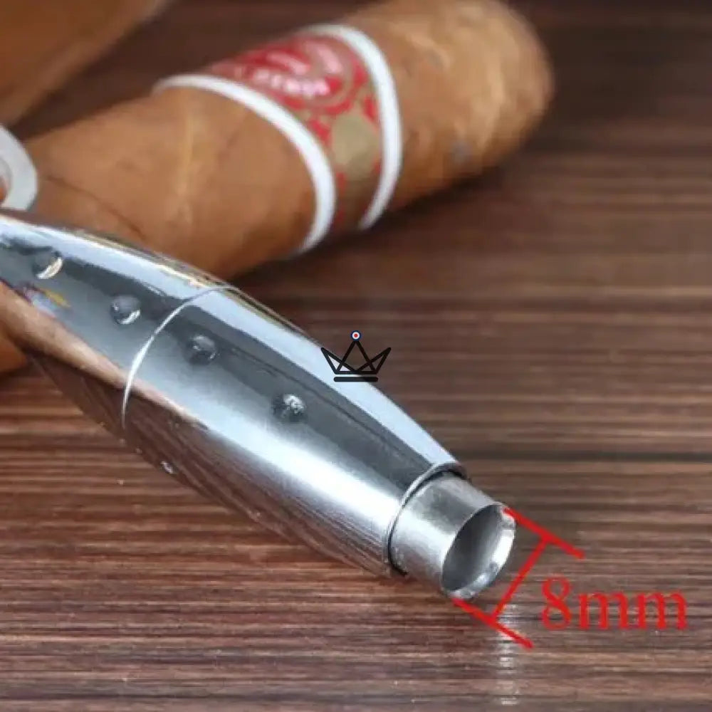 The punch is simple to use: simply twist the cap, insert the tip into the cigar, and twist gently to punch a clean hole that promotes even, satisfying smoke. The Cigar Punch - Silver Bang is the essential tool to prepare your cigar to be enjoyed as it should be.