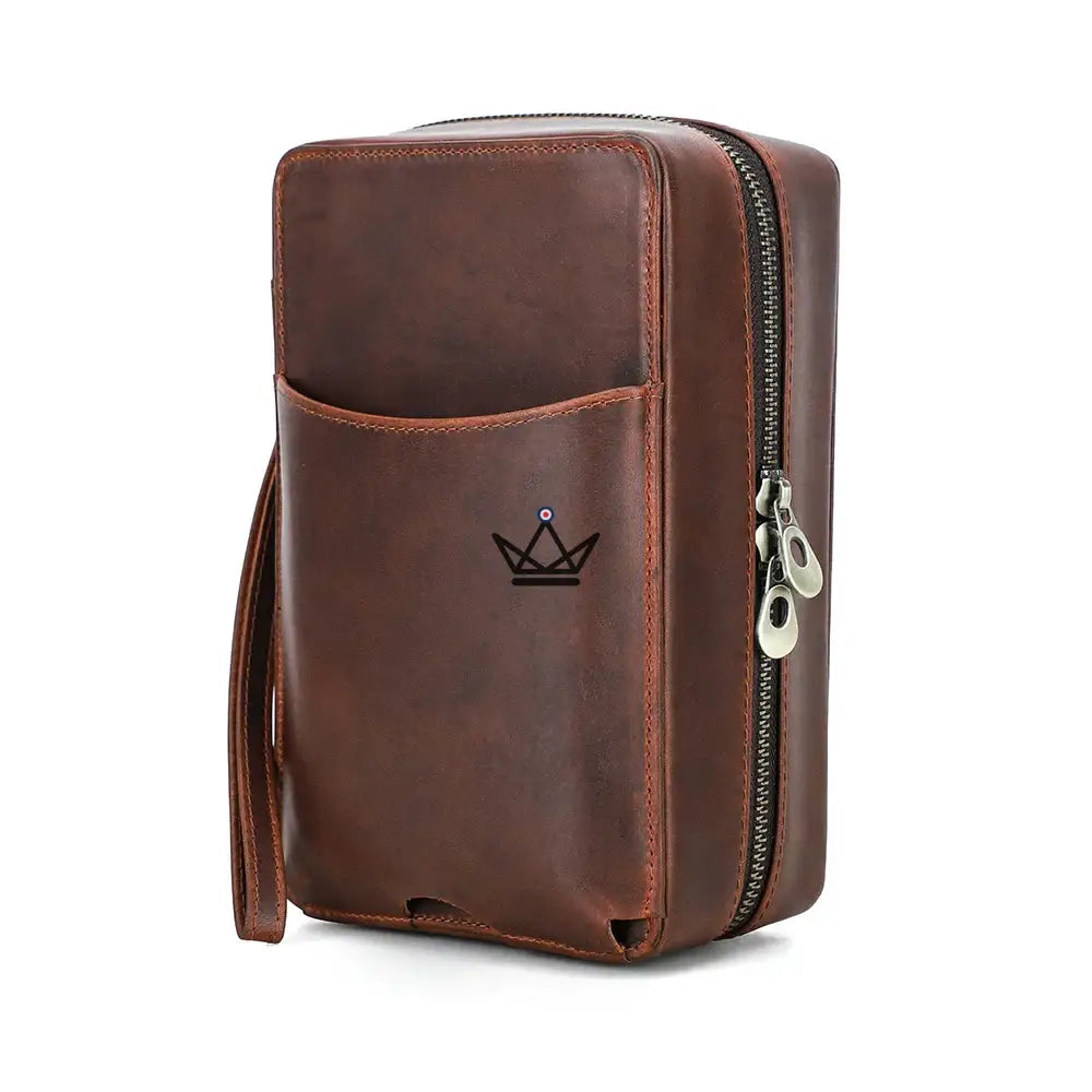 The "Voyageur Selection" Cigar Case offers more than just a safe and stylish home for your cigars. Available in a sophisticated chocolate hue, it combines the durability of full-grain leather with exquisite craftsmanship. With the option of laser engraving, each case can become an expression of your individuality or a uniquely personalized gift.