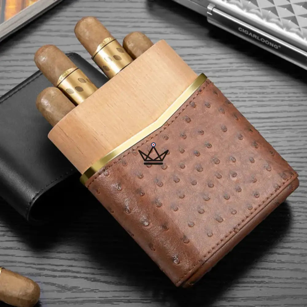 Elevate your cigar ritual with Linea Prestige , a refined case that embodies luxury, functionality, and contemporary elegance. Designed for discerning enthusiasts, this premium accessory combines a textured genuine leather exterior with a natural cedar wood interior, ensuring optimal preservation of your cigars while traveling.