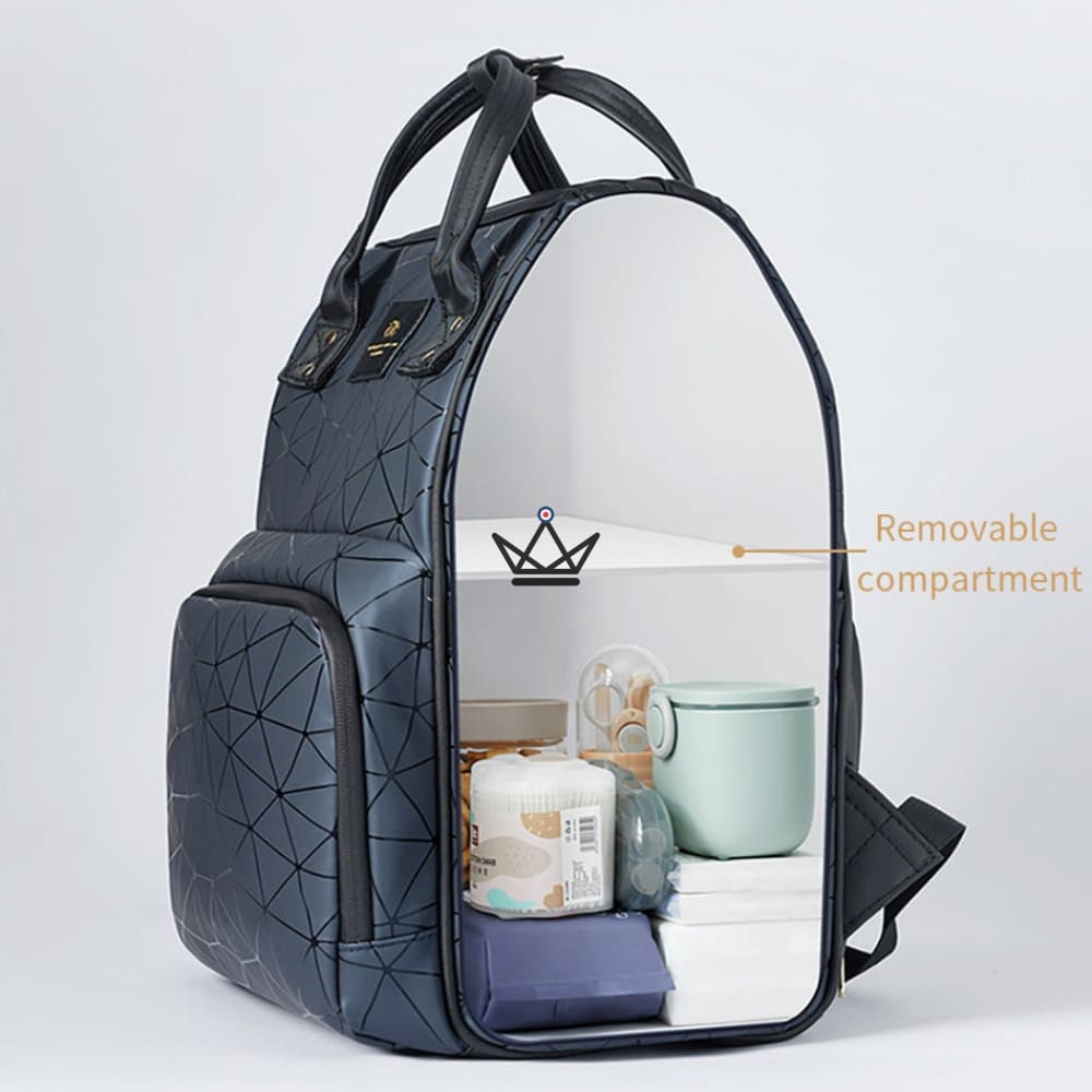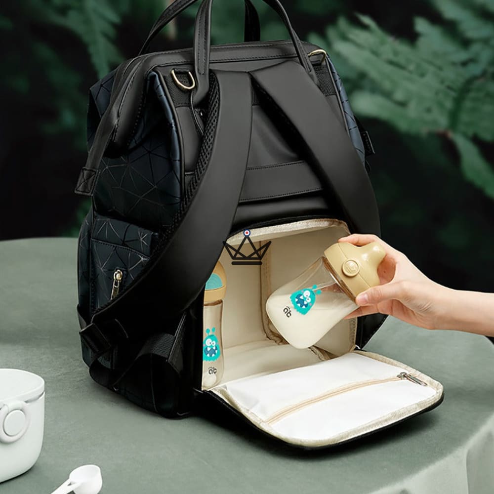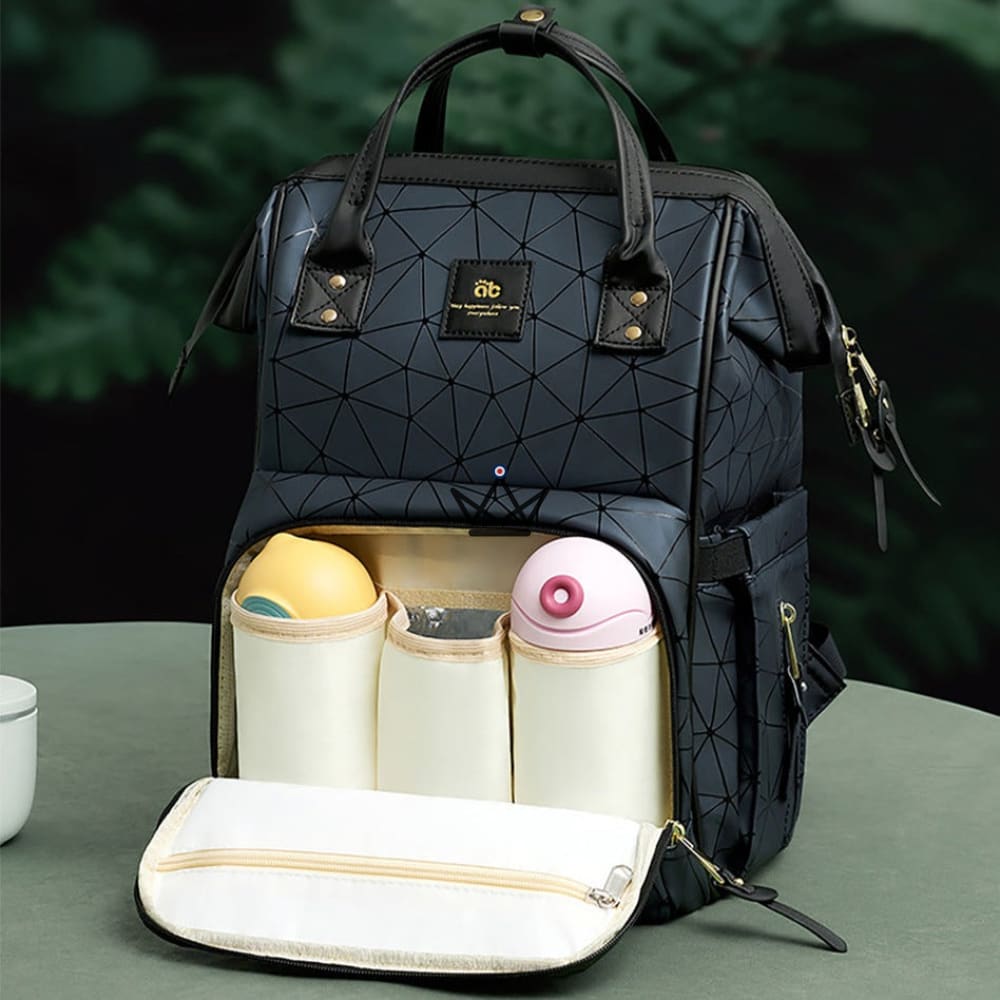 This sleek maternity bag is designed for modern moms looking for both practicality and style. With its unique geometric shapes, it will bring a touch of modernity to your look.