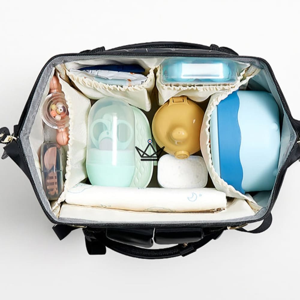 The maternity bag features a large main compartment with interior pockets to help you keep your things organized. You can store all the things you need for your baby, such as diapers, bottles, clothes, and more.