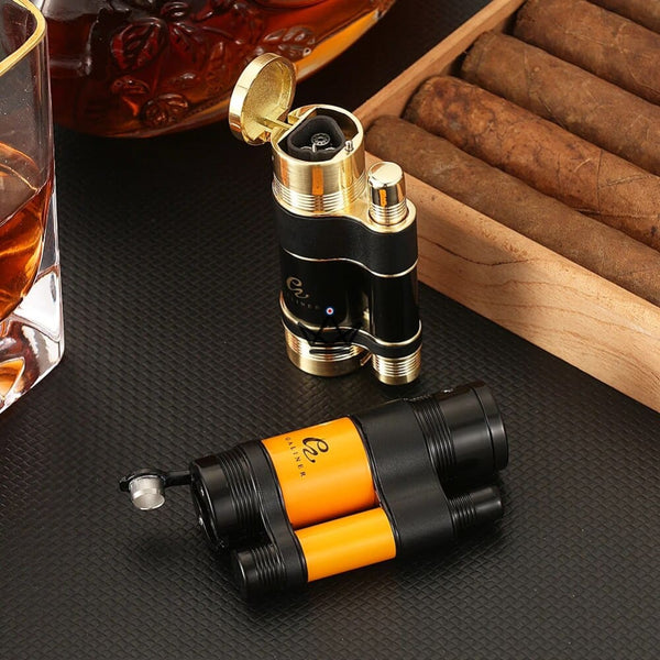 Discover the TOWER torch lighter, the ultimate accessory to light your cigar with elegance and precision. Featuring three powerful adjustable torches, this lighter offers a powerful and even flame, ensuring the perfect ignition every time.