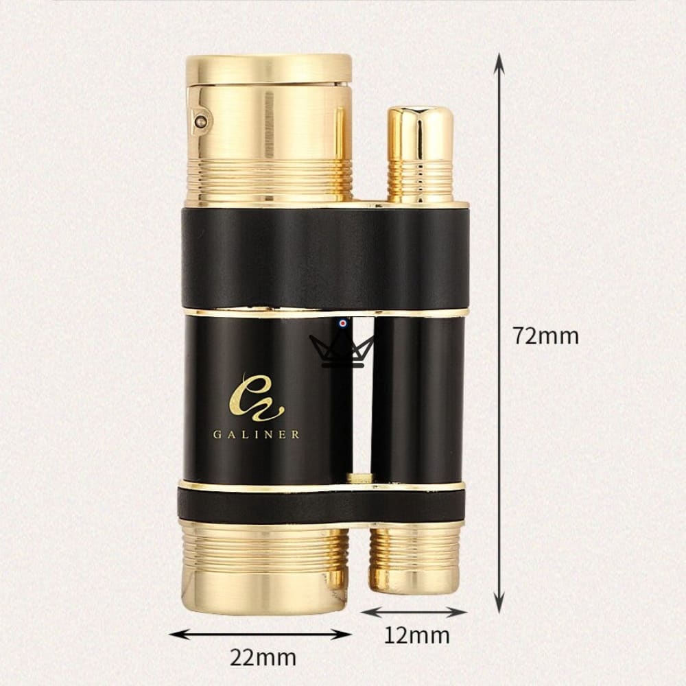 The TOWER is rechargeable, allowing you to use it sustainably. It comes uncharged, ready to be filled with the appropriate gas. Its compact size of 7.2 x 3.5 x 2.1 cm makes it an ideal travel companion for cigar lovers on the go.
