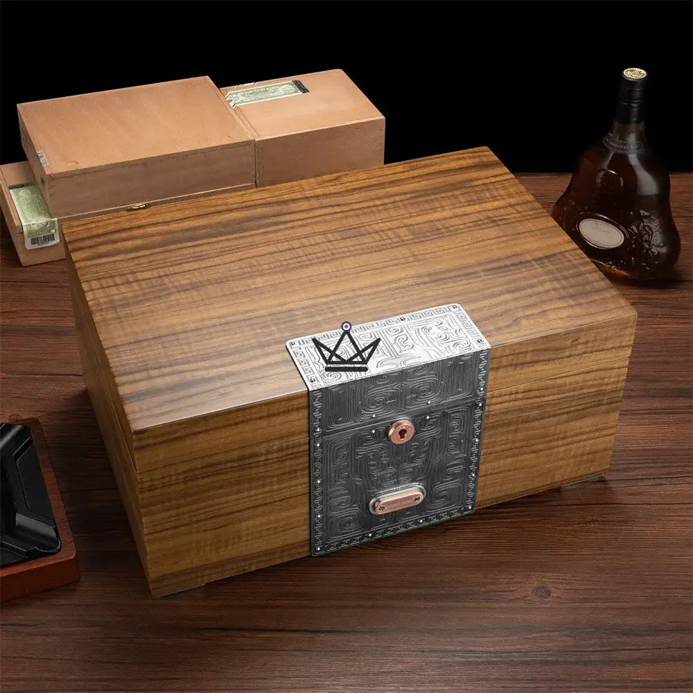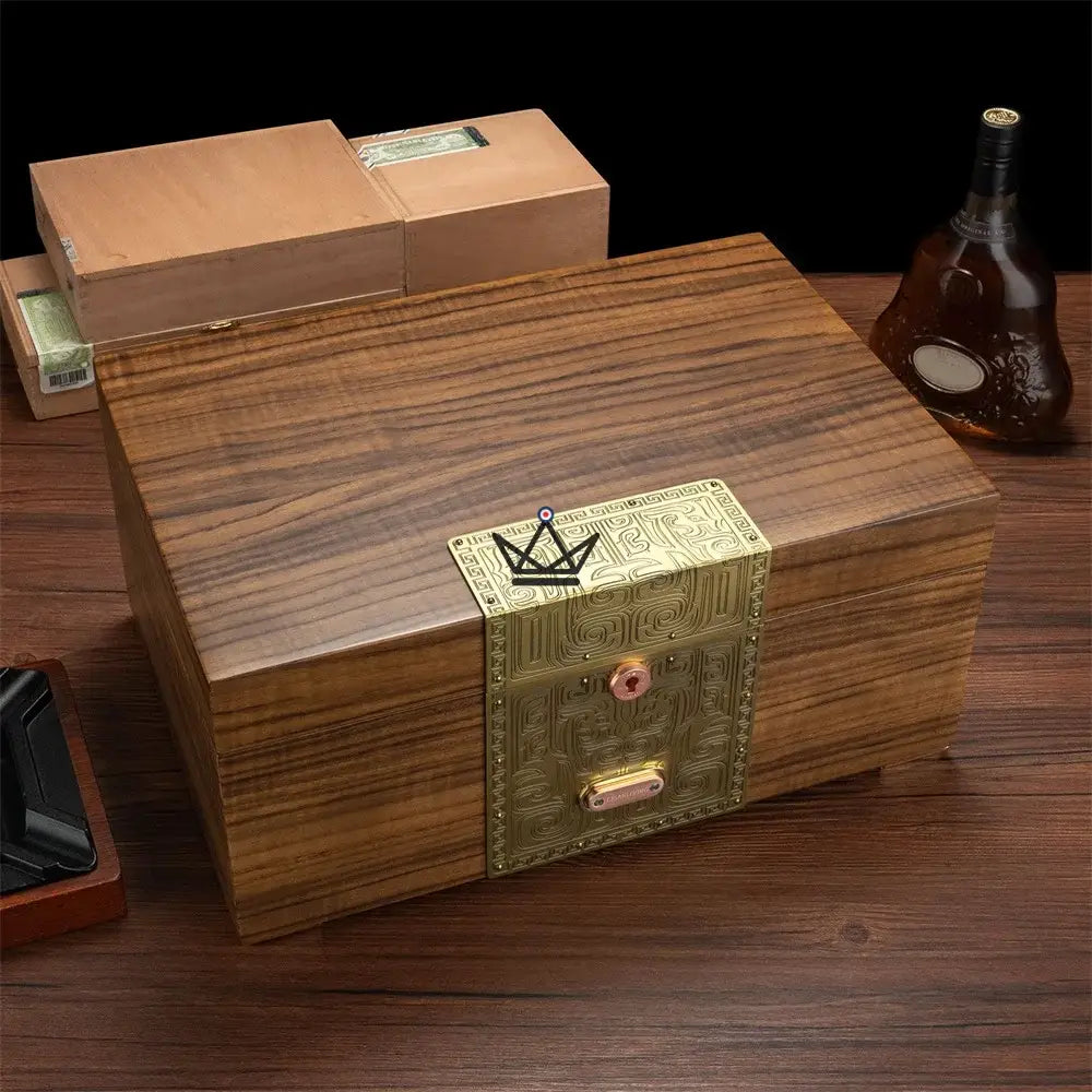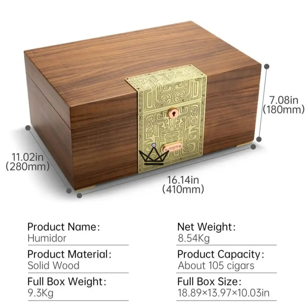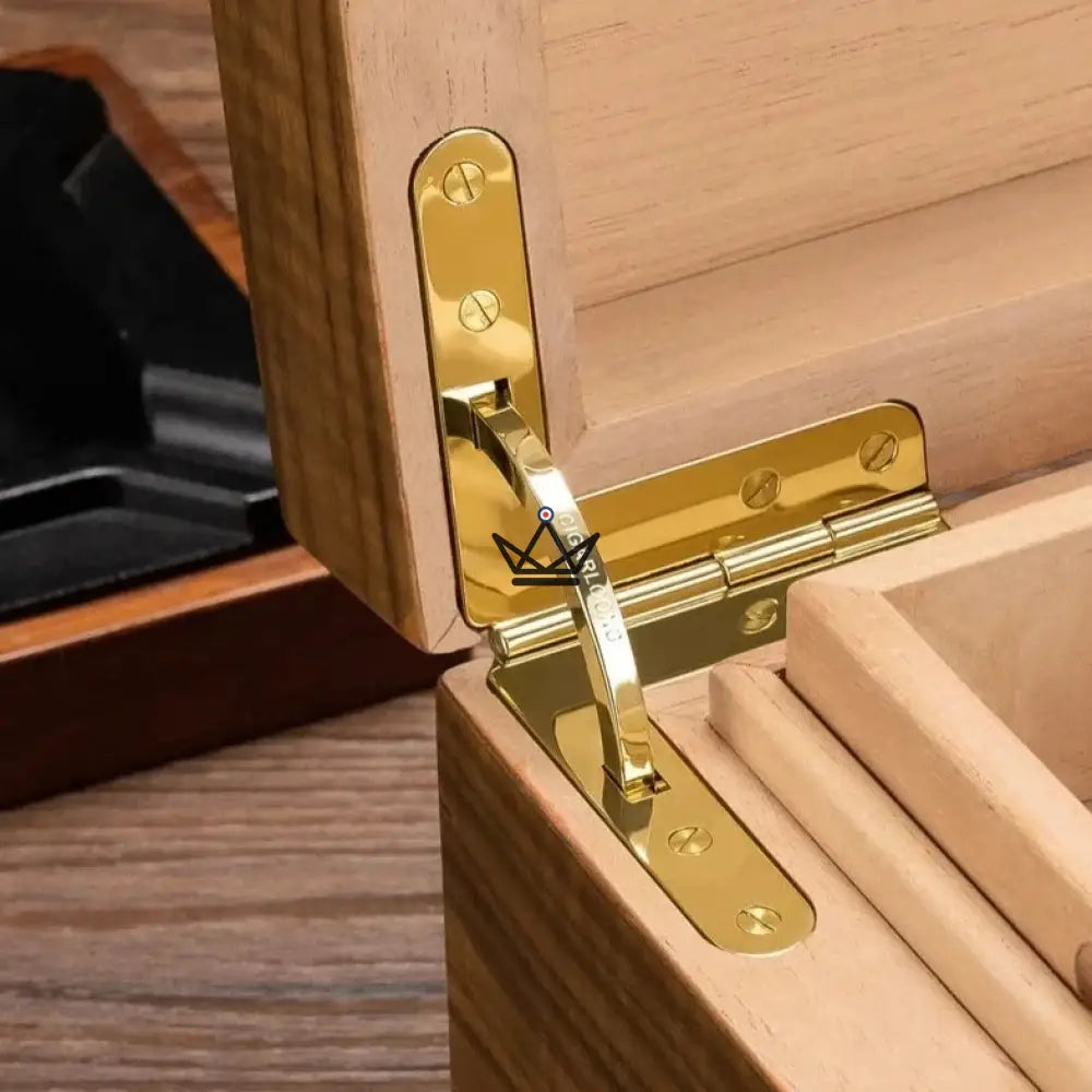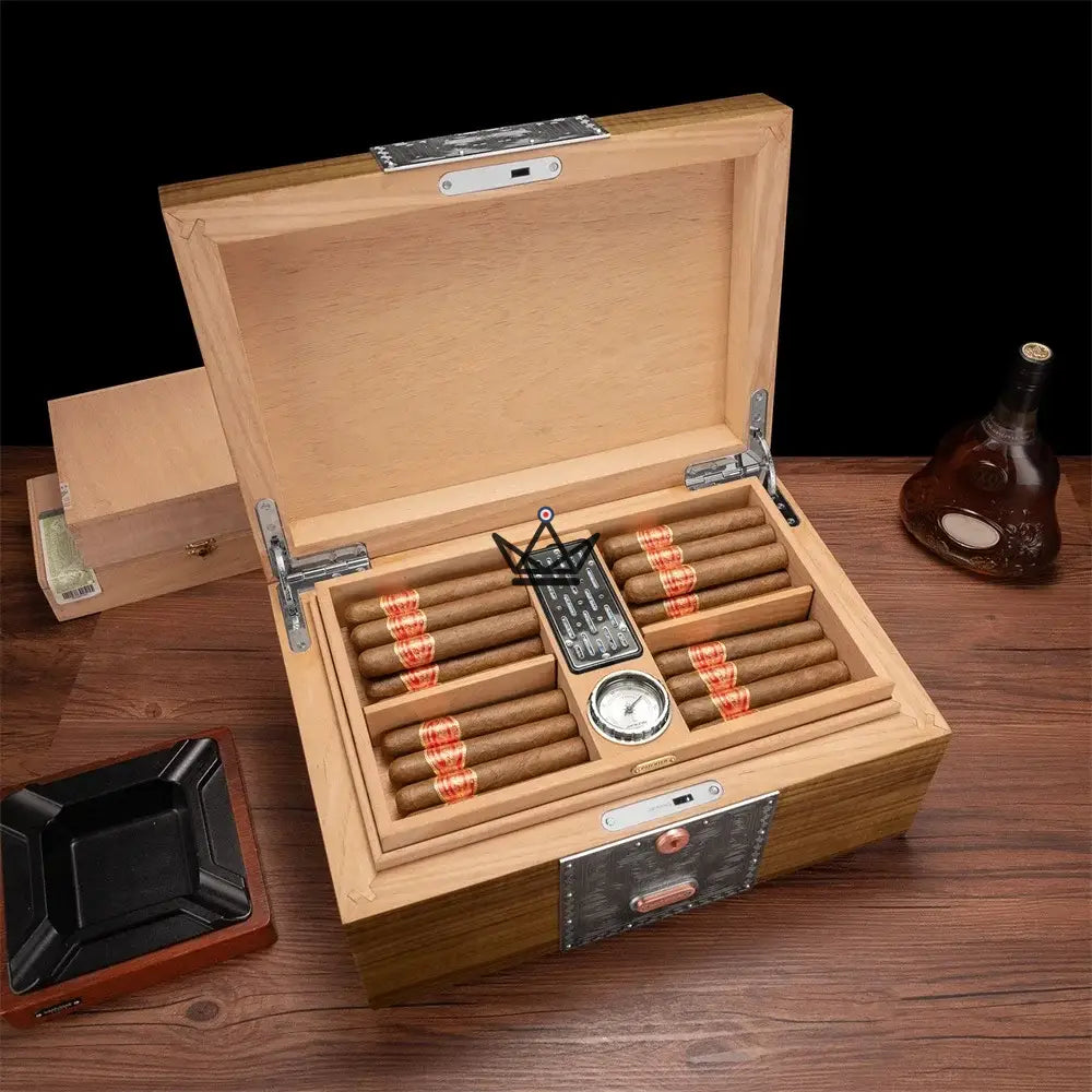 With a capacity of approximately 100 cigars, this humidor is equipped with sturdy metal hinges and a safety lock, ensuring the protection and preservation of your precious cigars. The humidor also includes a high-precision humidifier to maintain an optimal environment, ensuring that each cigar maintains its freshness and aroma.