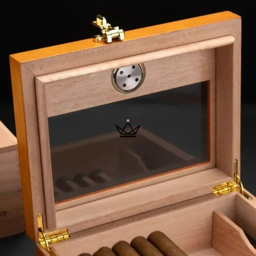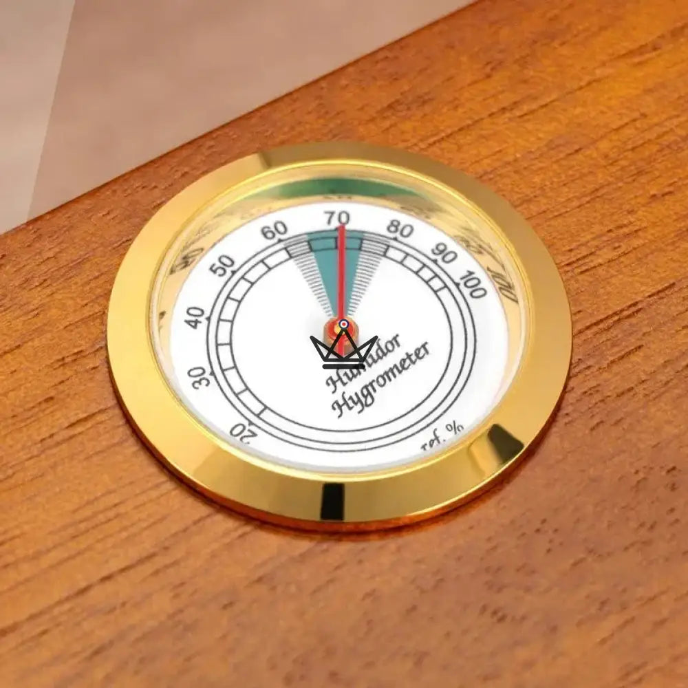 - Integrated Hygrometer: Ensure constant humidity monitoring with the integrated hygrometer on the lid. This essential tool helps maintain the ideal environment for storing your cigars.