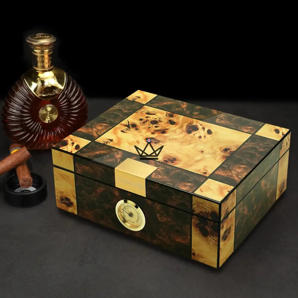 Give your cigars optimal preservation with the CheckMate humidor , a refined case that combines luxurious design and performance to preserve the aroma and quality of each cigar. Its sophisticated aesthetics and high-end finishes make it a must-have accessory for any cigar lover.