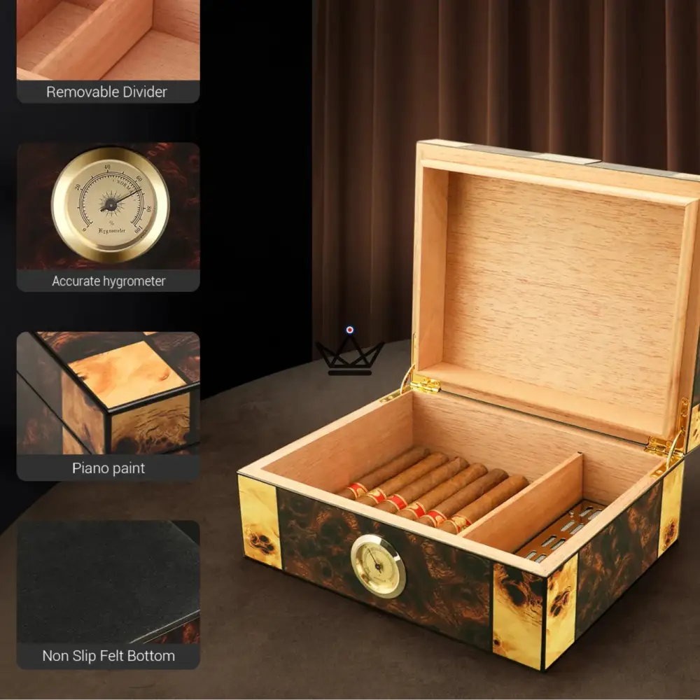 - Humidifier included : Helps maintain a constant humidity level and prevents cigars from drying out or becoming too humid.