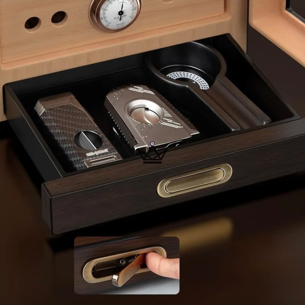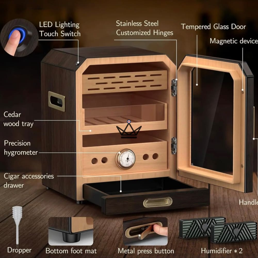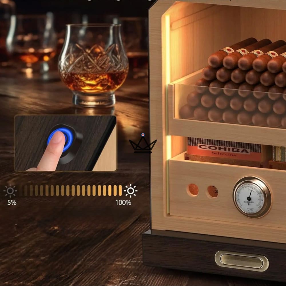 The Prestige Cedar Lux Cigar Humidor embodies the ideal combination of refined design , advanced preservation technology and noble materials . Designed for true enthusiasts, it guarantees optimal storage while enhancing the presentation of your cigars.