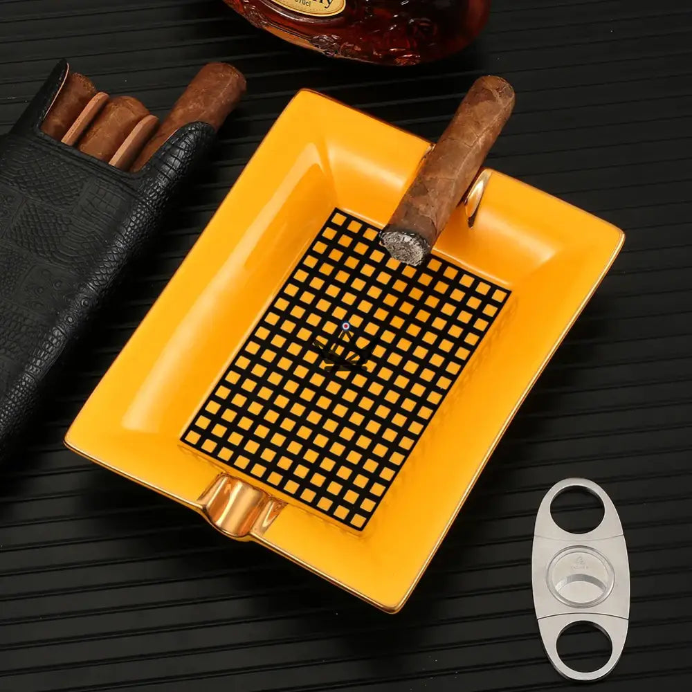 The contemporary aesthetic of this ashtray makes it a true decorative item, adding a touch of style and elegance to any space. Its two holders are designed to hold your Cohiba cigars securely, allowing you to enjoy your precious relics in complete peace of mind.