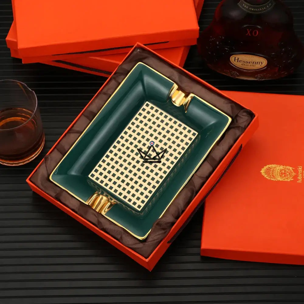 Immerse yourself in the world of sophistication and refinement with our Monroe Gold Luxury Ashtray. This exquisite accessory is designed to enhance your Cohiba cigar tasting experience by combining elegance, modern design and functionality.