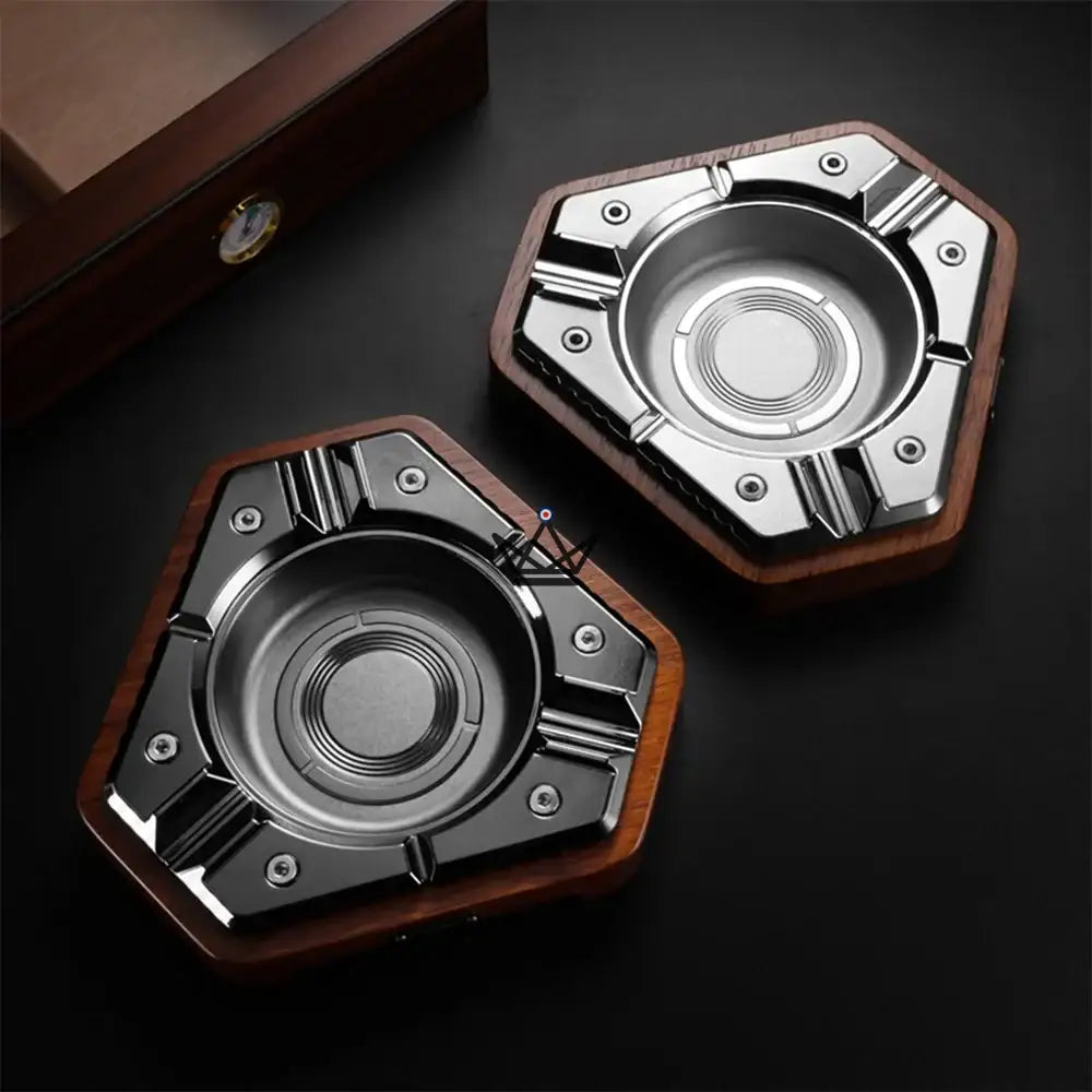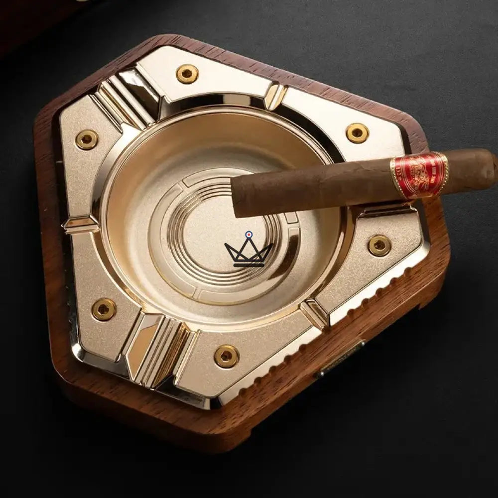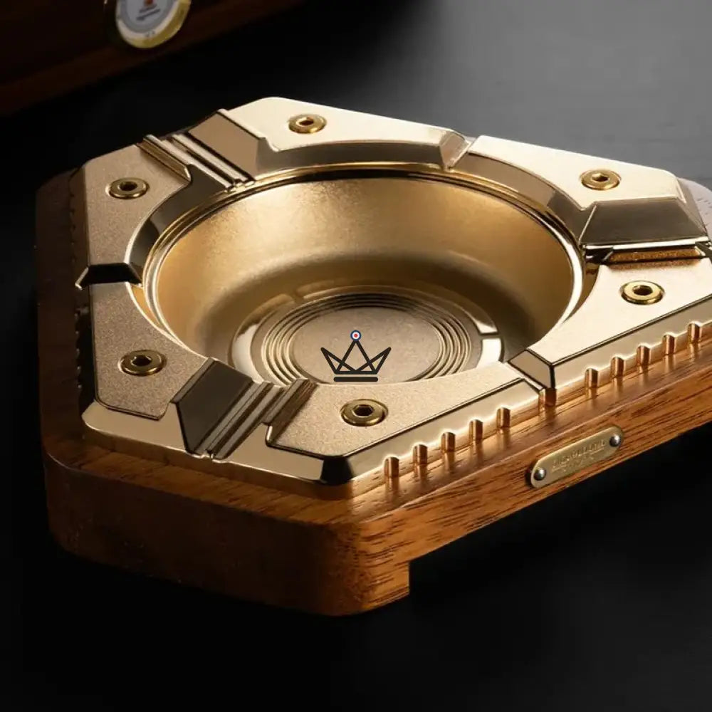 This cigar ashtray combines a solid wood base with a zinc alloy, creating a sturdy and sophisticated design. The unique triangular shape adds a touch of modernity and distinction to your smoking space.