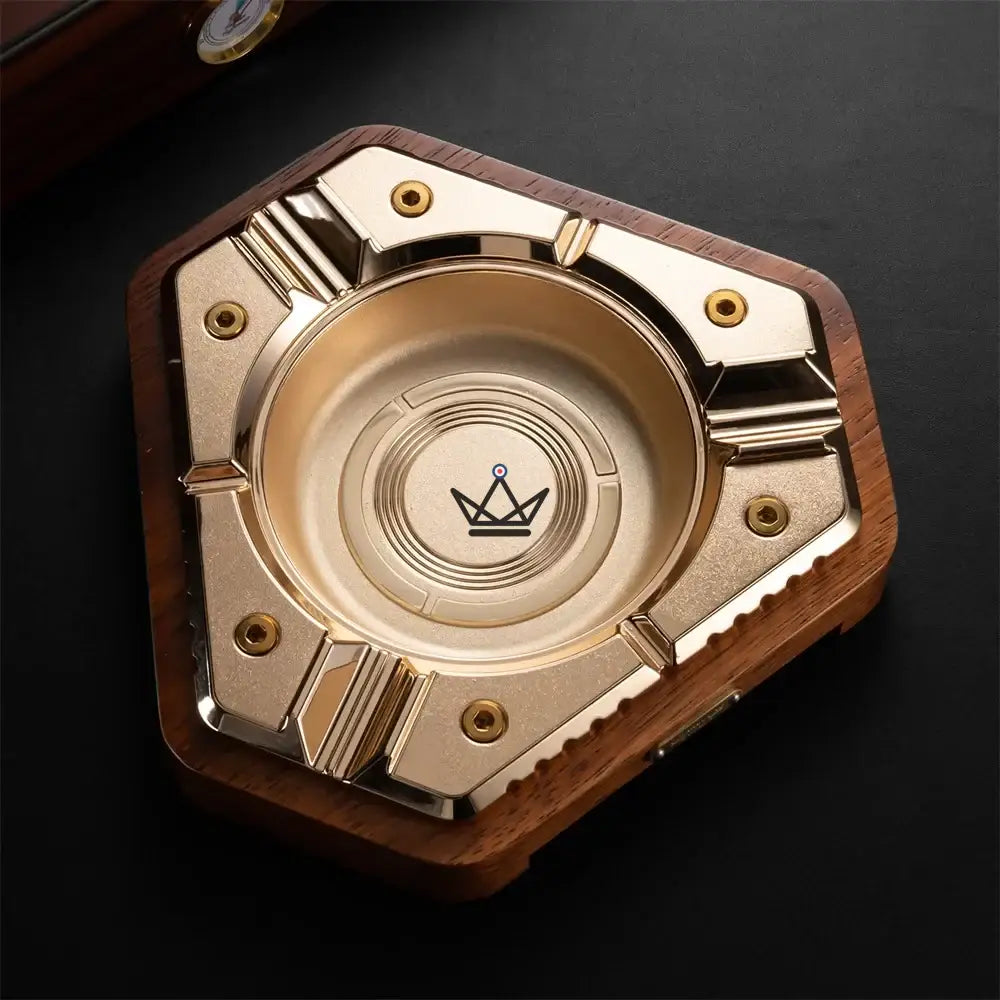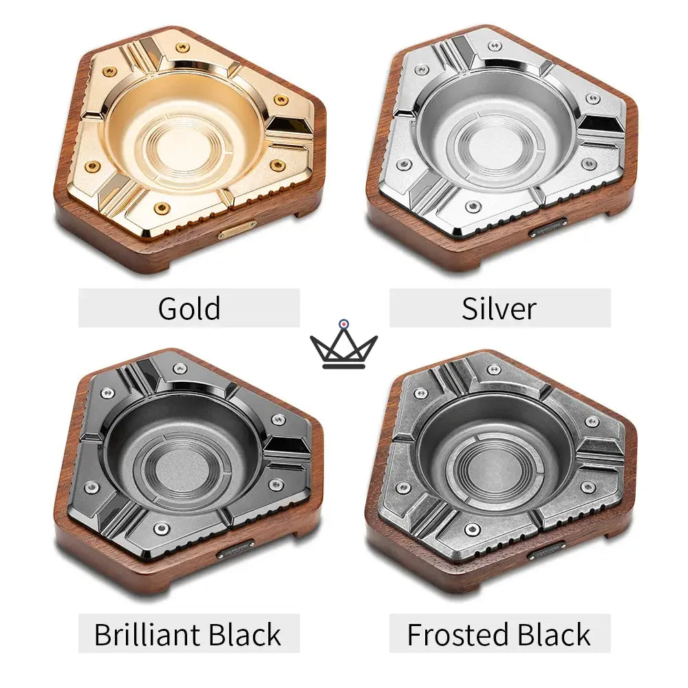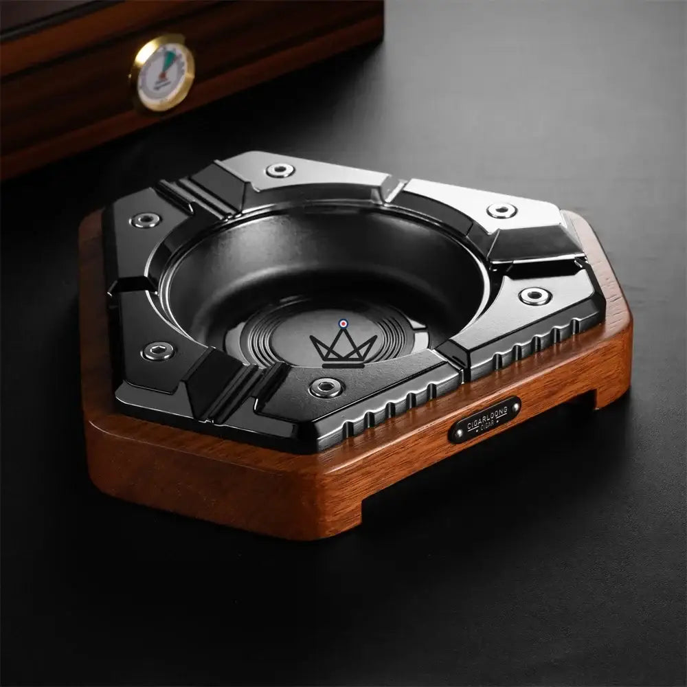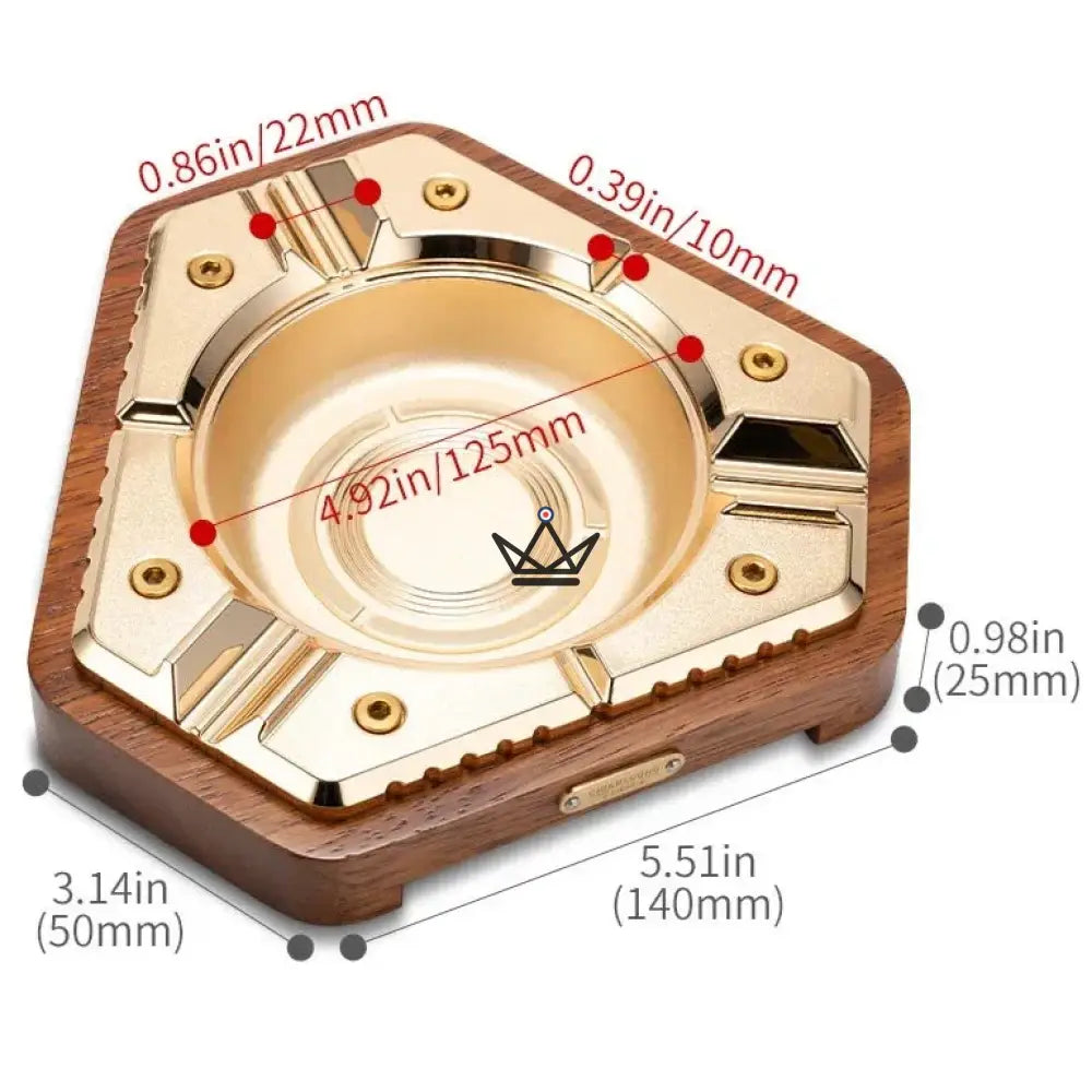 This cigar ashtray combines a solid wood base with a zinc alloy, creating a sturdy and sophisticated design. The unique triangular shape adds a touch of modernity and distinction to your smoking space.