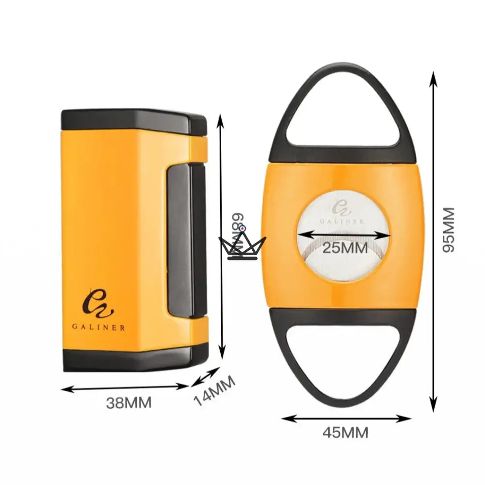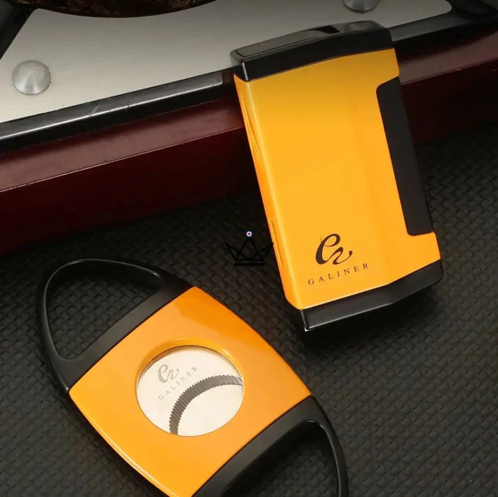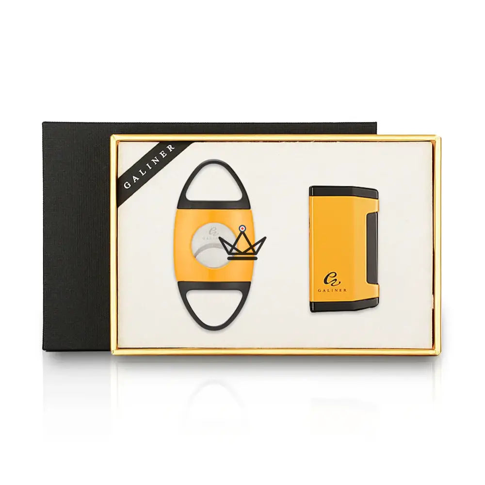 Discover the GOLDYR box set, a perfect combination for cigar lovers. This set combines style, performance and practicality, ideal for a refined tasting moment. Available in two elegant colors: Flame Yellow and Ebony Black , it will adapt to your tastes and bring a touch of sophistication to your ritual.