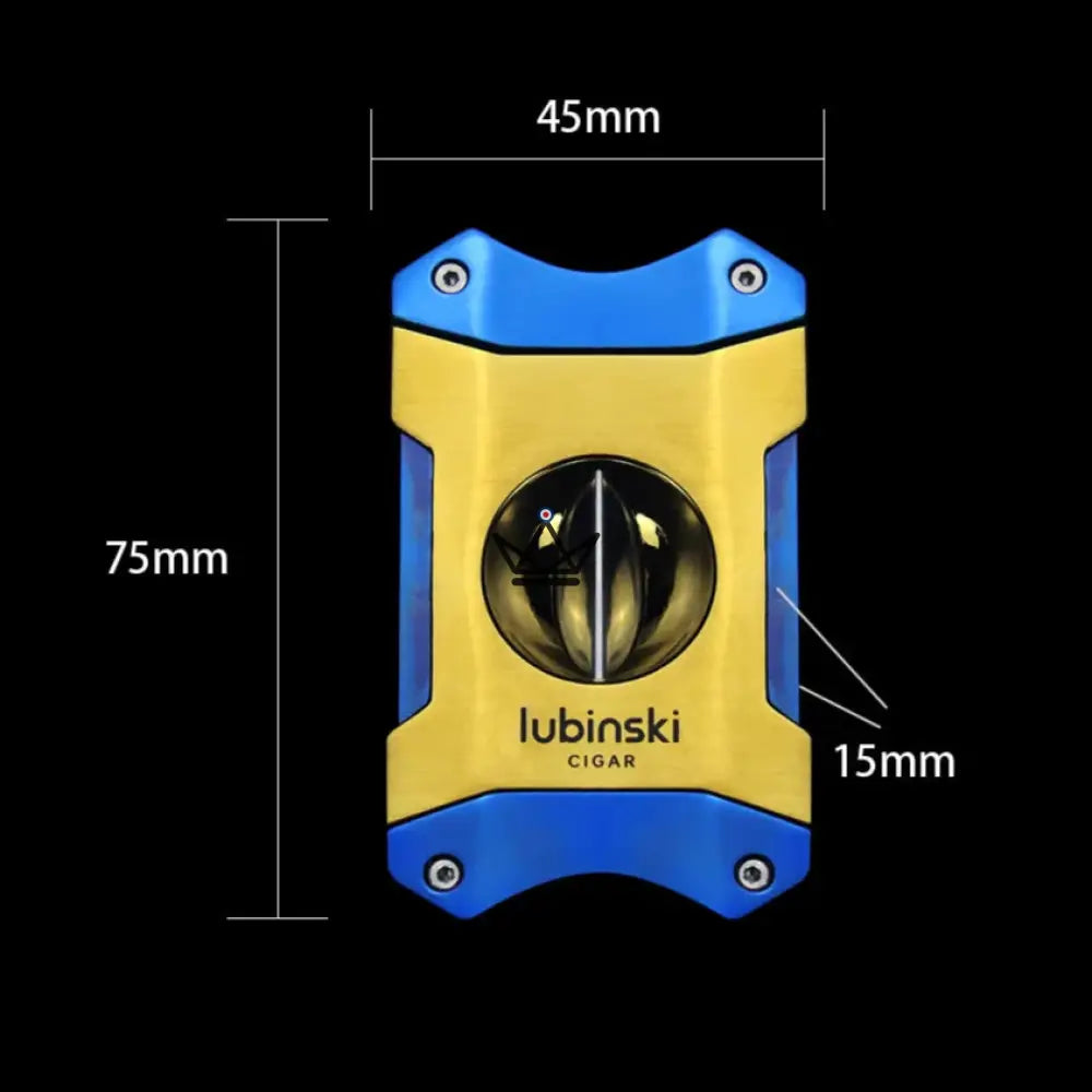 Made from zinc alloy and stainless steel , this double-blade cigar cutter offers a clean, symmetrical and effortless V-shaped cut. Its two-tone gold and deep blue design embodies both elegance and power , evoking the world of great watchmaking houses.