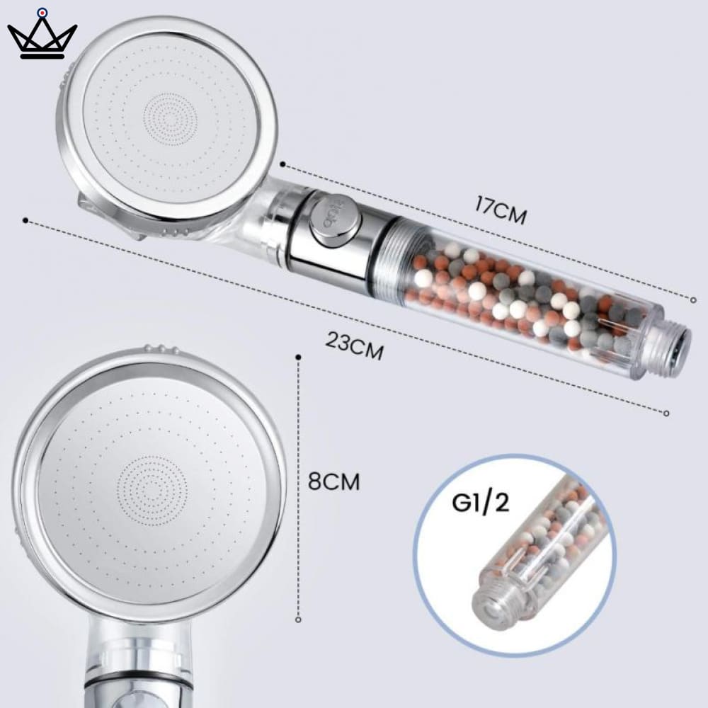 - Far Infrared beads (orange): reduces impurities as well as chlorine and bacteria levels that are a source of damage to hair and skin.