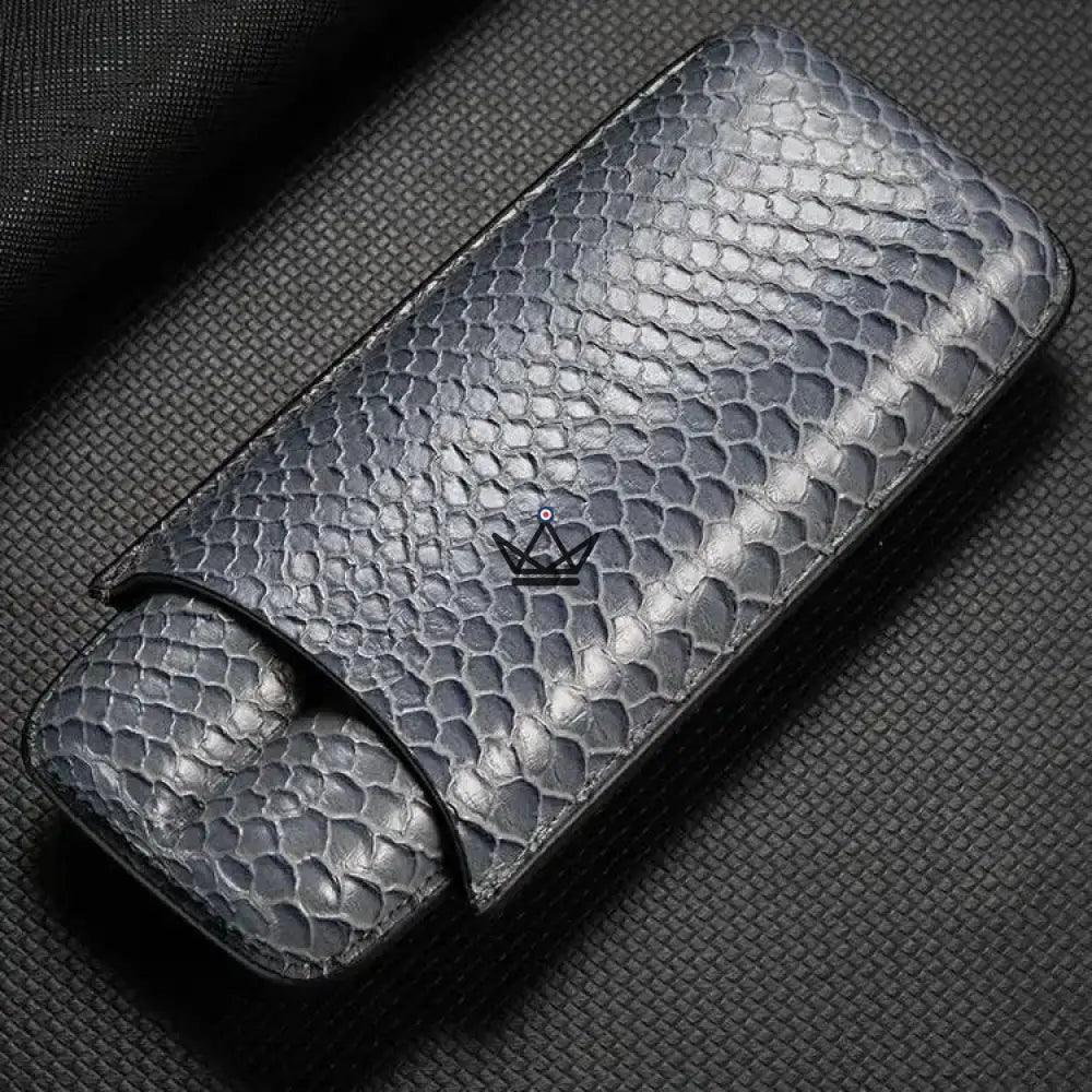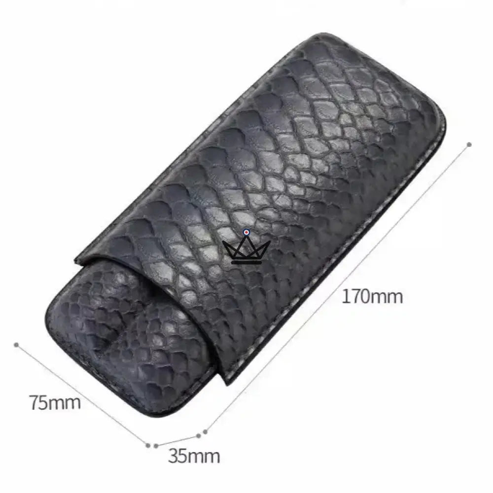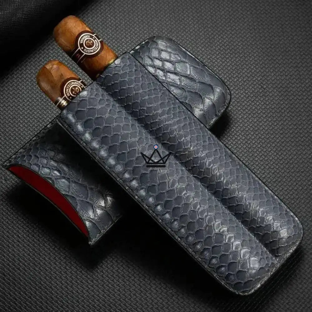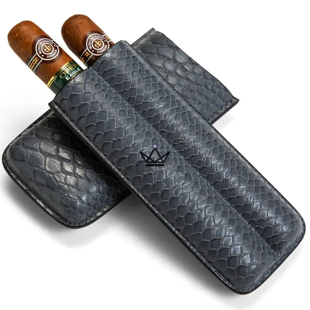 This model is specially designed to hold two cigars , offering optimal protection thanks to its soft interior and robust structure. The leather is carefully crafted to ensure an impeccable finish, while the exterior features an embossed texture that adds a touch of sophistication. Each case has a practical, easy-to-handle closure for secure transport of your cigars.