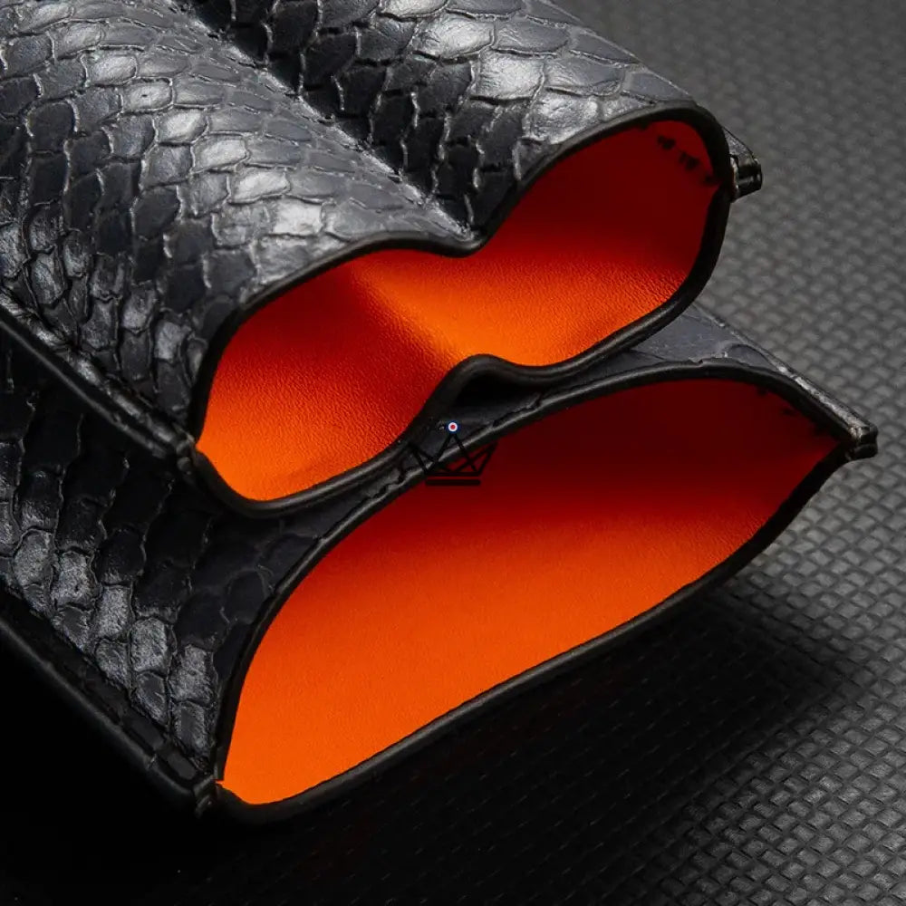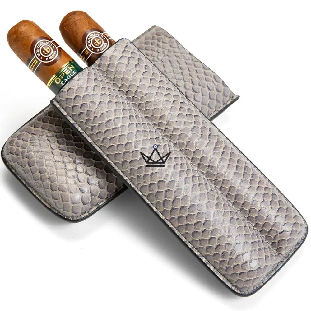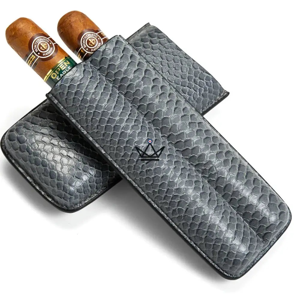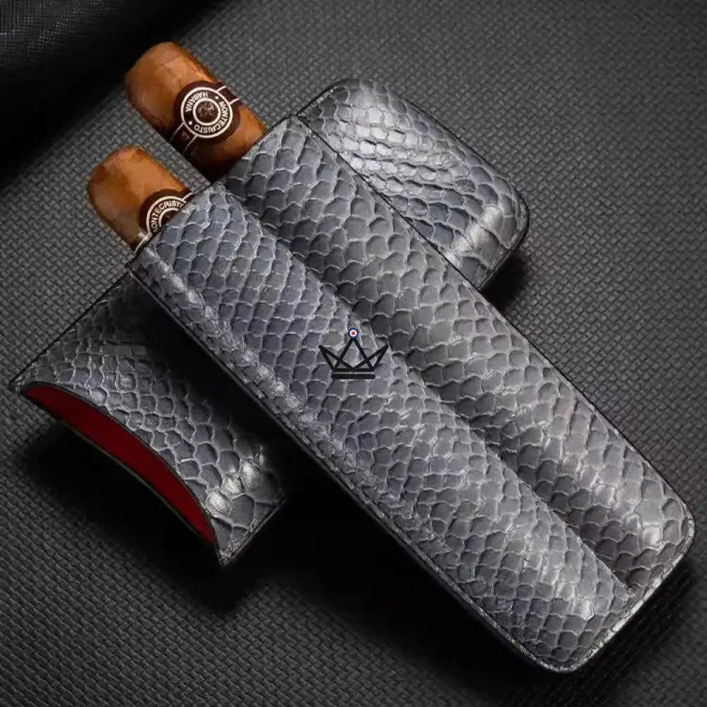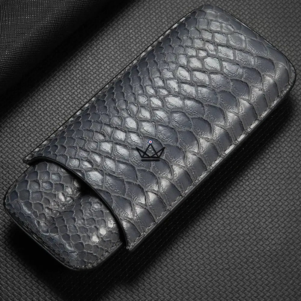 This model is specially designed to hold two cigars , offering optimal protection thanks to its soft interior and robust structure. The leather is carefully crafted to ensure an impeccable finish, while the exterior features an embossed texture that adds a touch of sophistication. Each case has a practical, easy-to-handle closure for secure transport of your cigars.