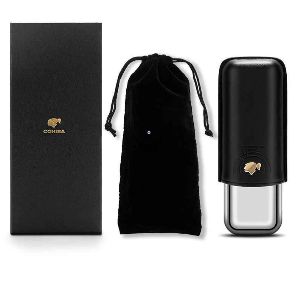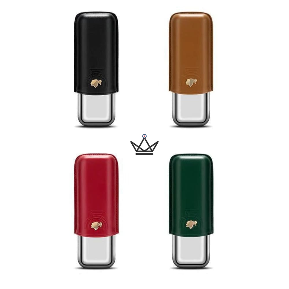 Each piece is embossed with a stylized artistic pattern , adding a distinctive and sophisticated touch. Its secure interior accommodates two cigars while maintaining their integrity, humidity and aroma, even when on the move.