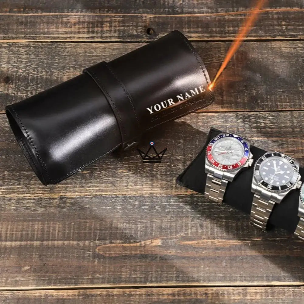 Customizable Leather Automatic Watch Travel Case - ChronoGuard Traveler