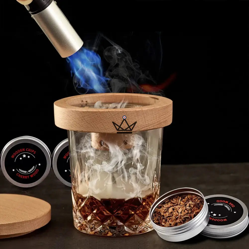 Simple, fast and elegant, SmokerCraft Origin allows you to flavor your drinks in seconds using natural wood sawdust , a wooden smoker cap and a torch lighter or BIC lighter to produce a steady flame .