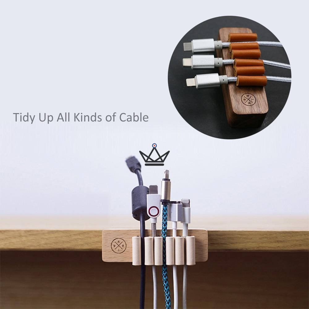Organize, tidy up and easily purify your desk with this wooden and leather storage set for cables from the special USA collection - PEPMI
