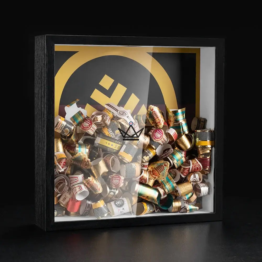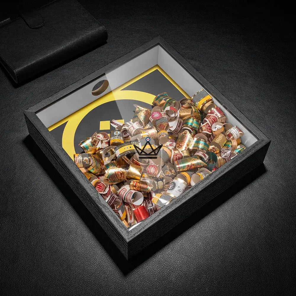Discover the Cigar Ring Display - Square Ring, a sophisticated decorative frame designed for cigar enthusiasts who want to showcase their collection of smoked cigar rings.
