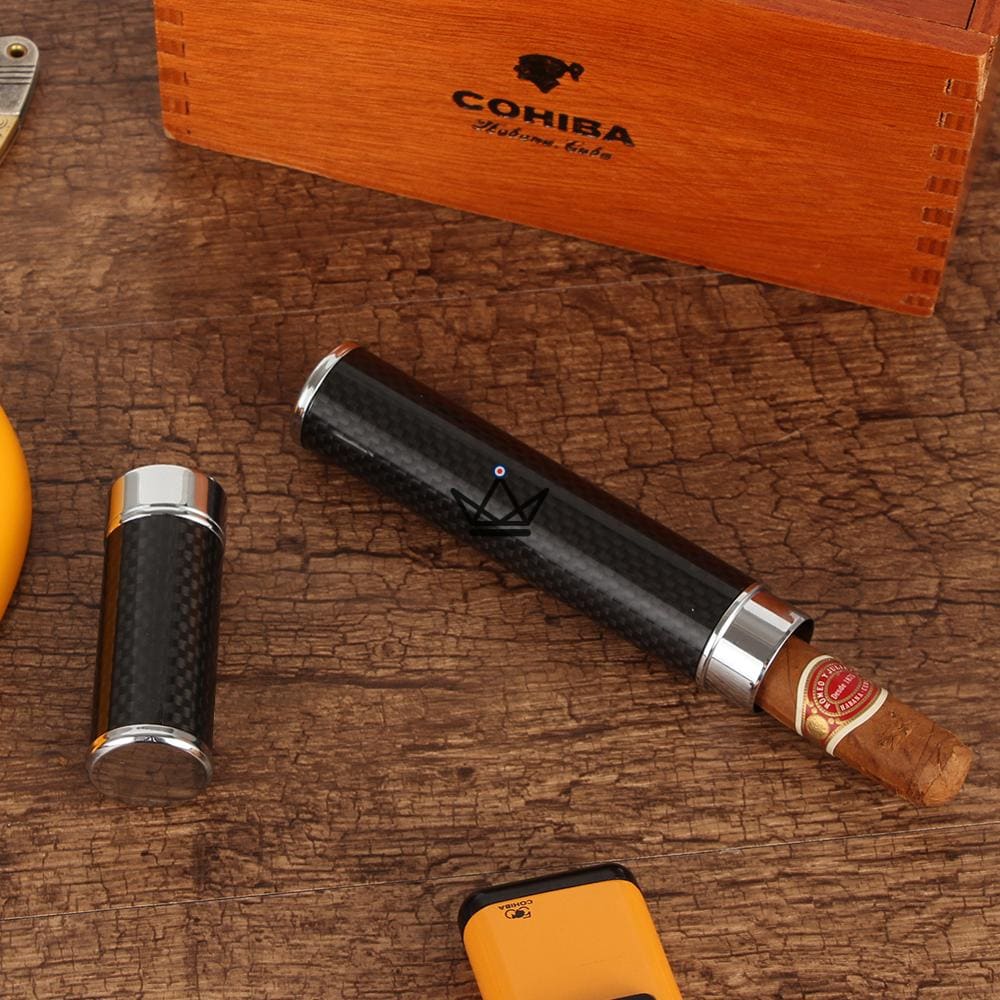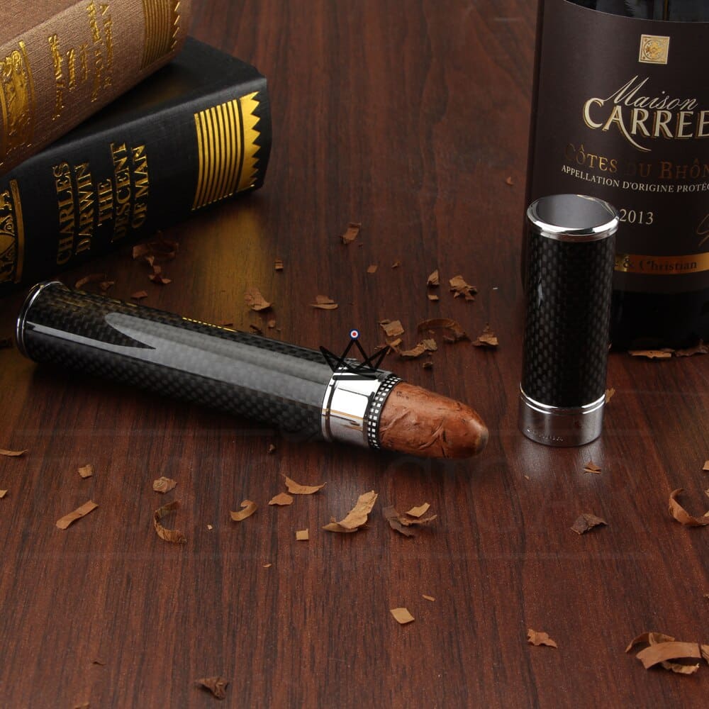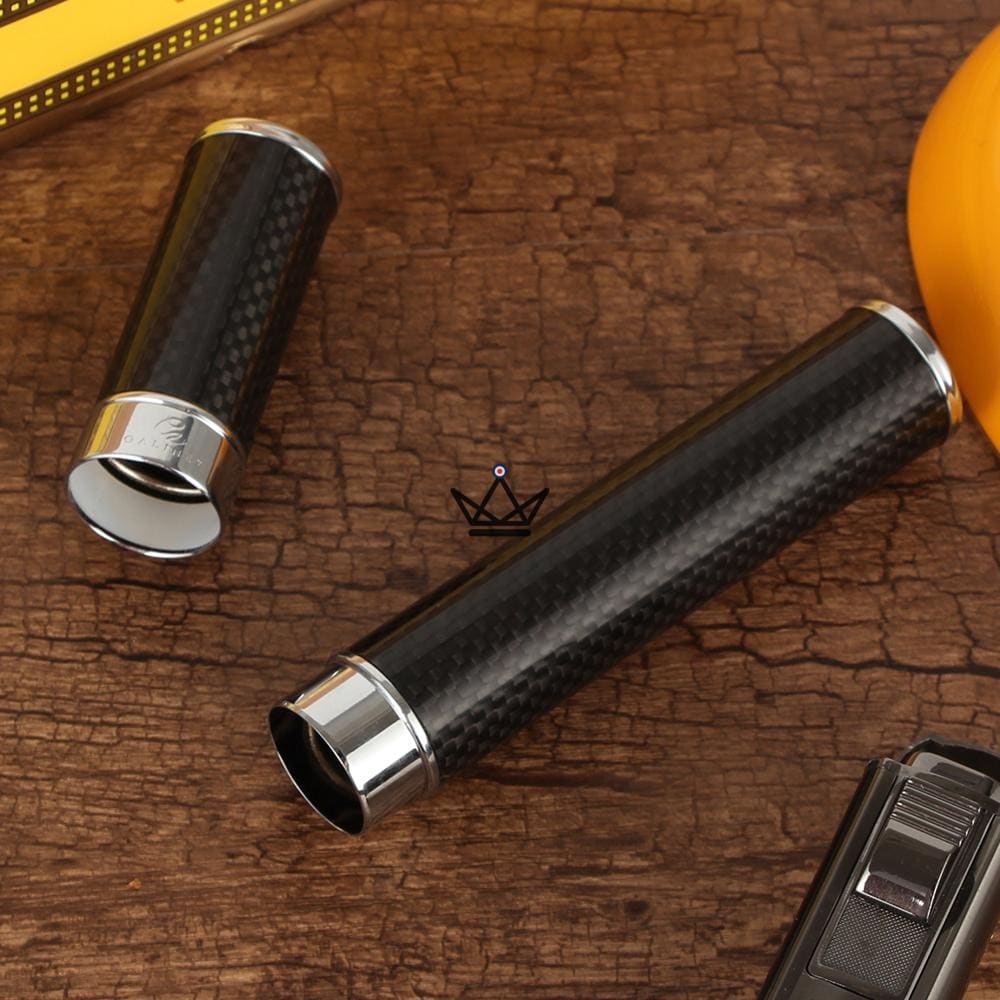 Made from a solid metal shell and covered with a thin layer of carbon fiber, this transport tube protects your cigar from light and temperature fluctuations.