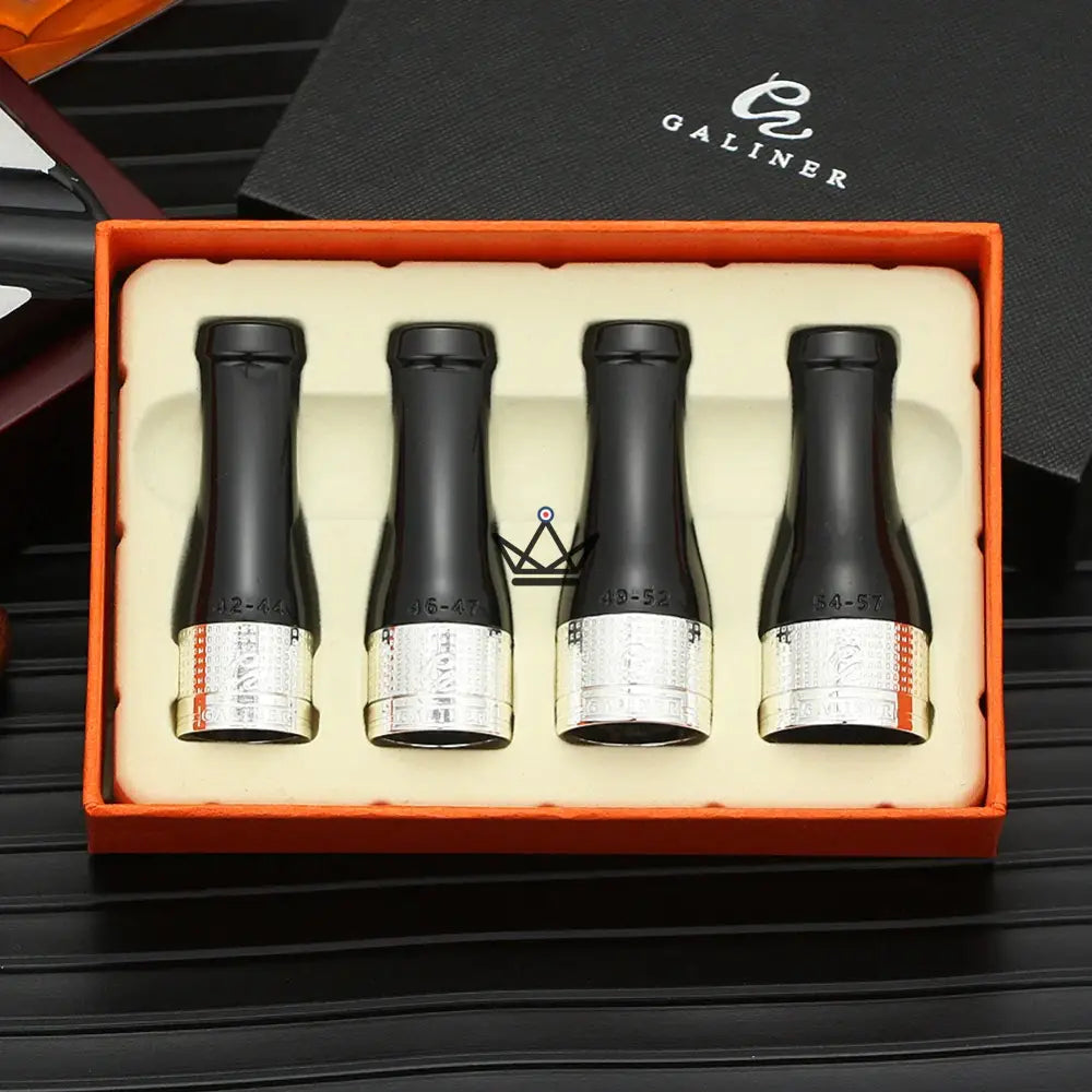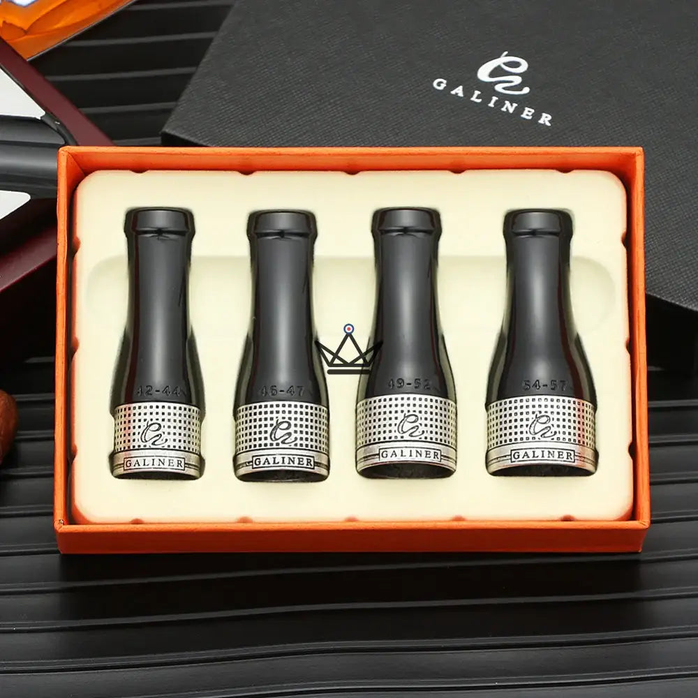 Avec Aristocap, transcendez les plaisirs du cigare grâce à un assortiment d'embouts aussi fonctionnels que raffinés. Chaque lot est composé de quatre tailles distinctes – 42/44, 46/47, 49/52, 54/57 – conçues pour s'adapter à l'éventail complet des anneaux de cigares Cohiba et autres, assurant une expérience personnalisée et confortable pour chaque amateur.