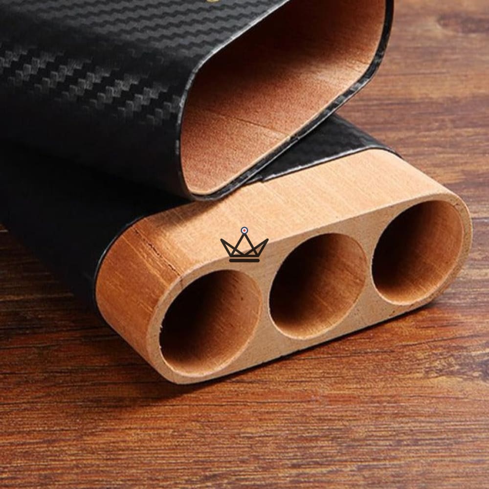 Les dimensions de cet étui sont spécialement conçues pour accueillir jusqu'à trois cigares d'un diamètre maximum de 22 mm. Les cigares sont maintenus en place grâce aux emplacements dédiés, évitant ainsi tout mouvement indésirable pendant le transport.