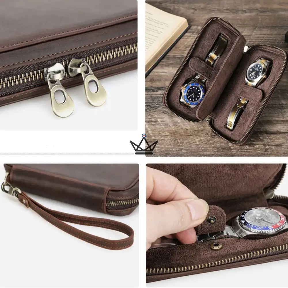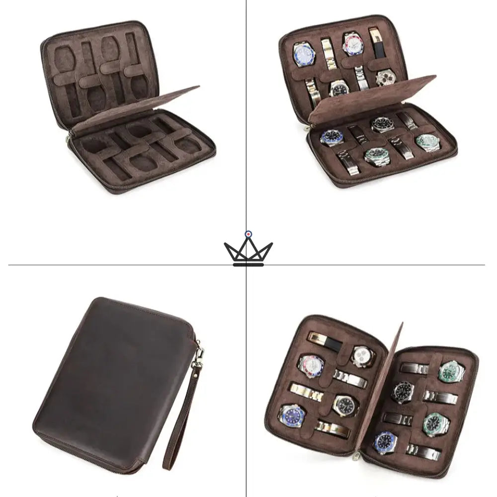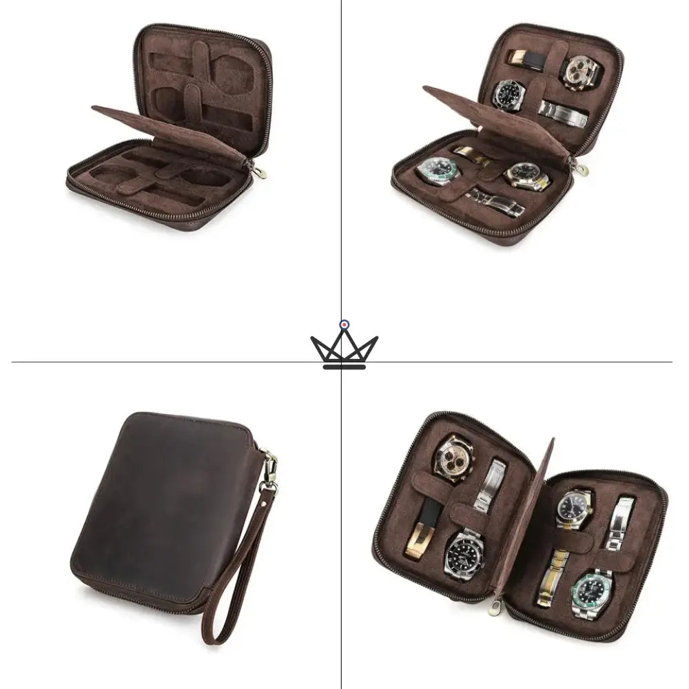 Disponible en 4 formats pratiques (2, 4, 6 ou 8 montres), il s’adapte à votre collection et à vos besoins, que ce soit pour un week-end ou un voyage d’affaires. Sa fermeture éclair robuste et sa dragonne amovible facilitent le transport tout en offrant une prise en main confortable.