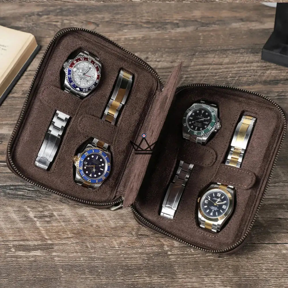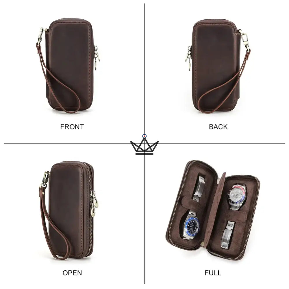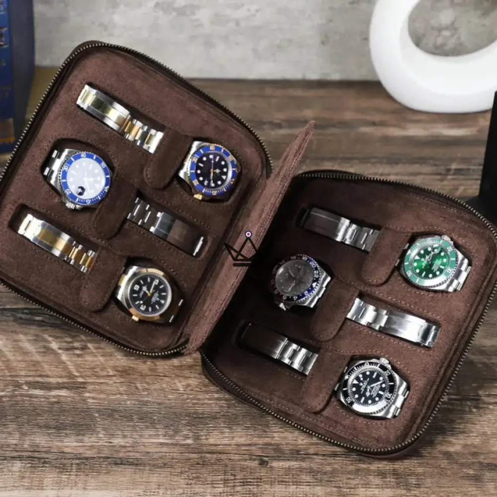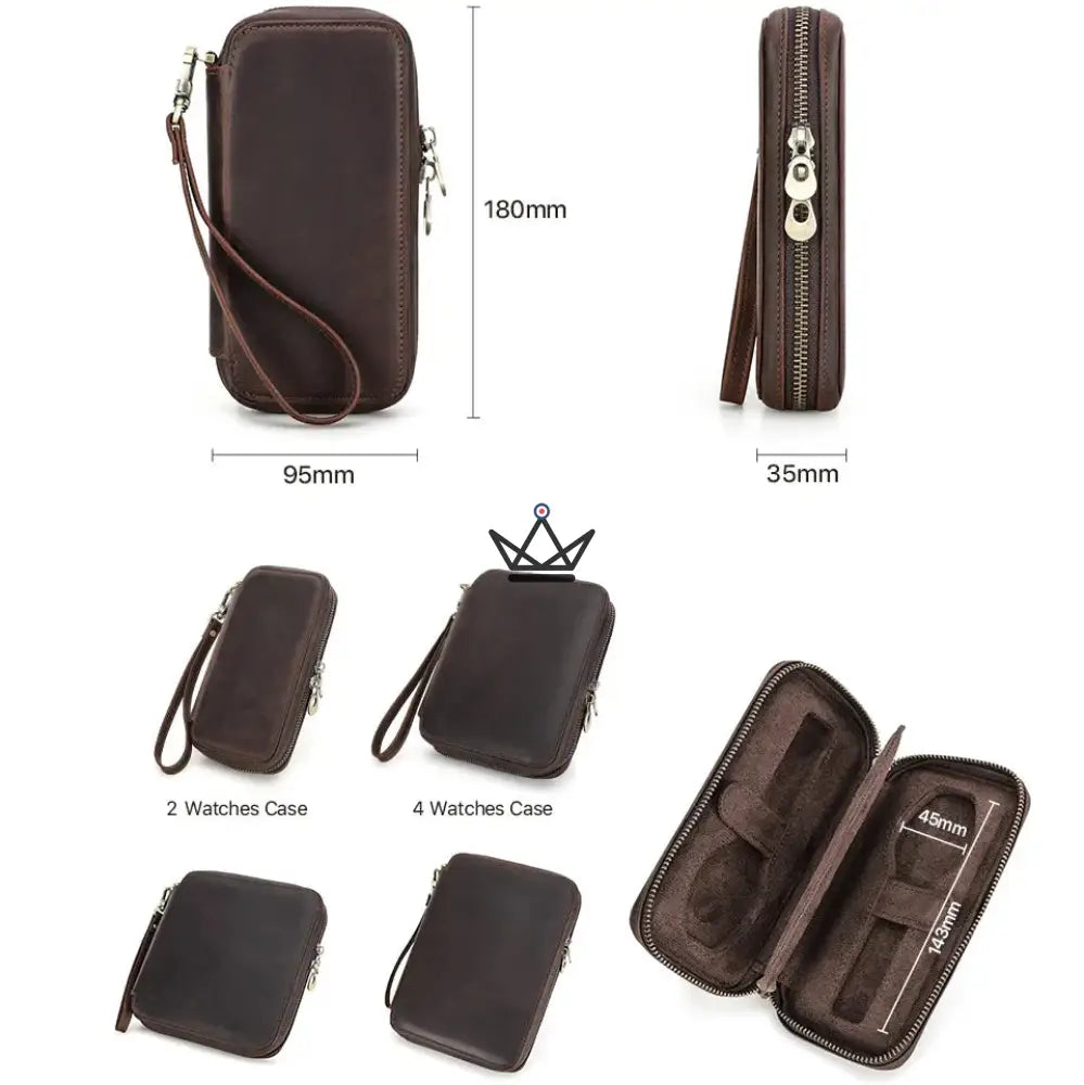 Disponible en 4 formats pratiques (2, 4, 6 ou 8 montres), il s’adapte à votre collection et à vos besoins, que ce soit pour un week-end ou un voyage d’affaires. Sa fermeture éclair robuste et sa dragonne amovible facilitent le transport tout en offrant une prise en main confortable.