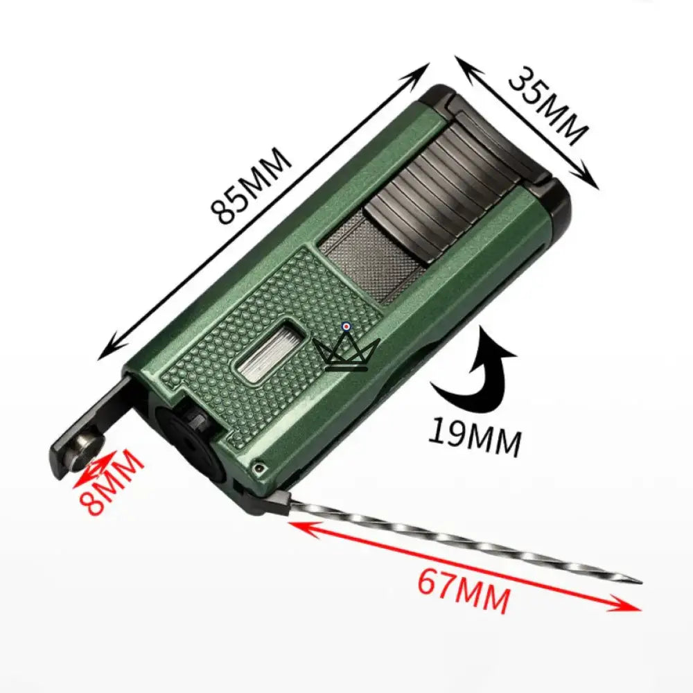Sa fonctionnalité est poussée à son maximum grâce à l’intégration d’un poinçon à cigare et d’une aiguille à cigare de 67 mm, facilitant le débouchage de vos cigares pour une expérience optimale.