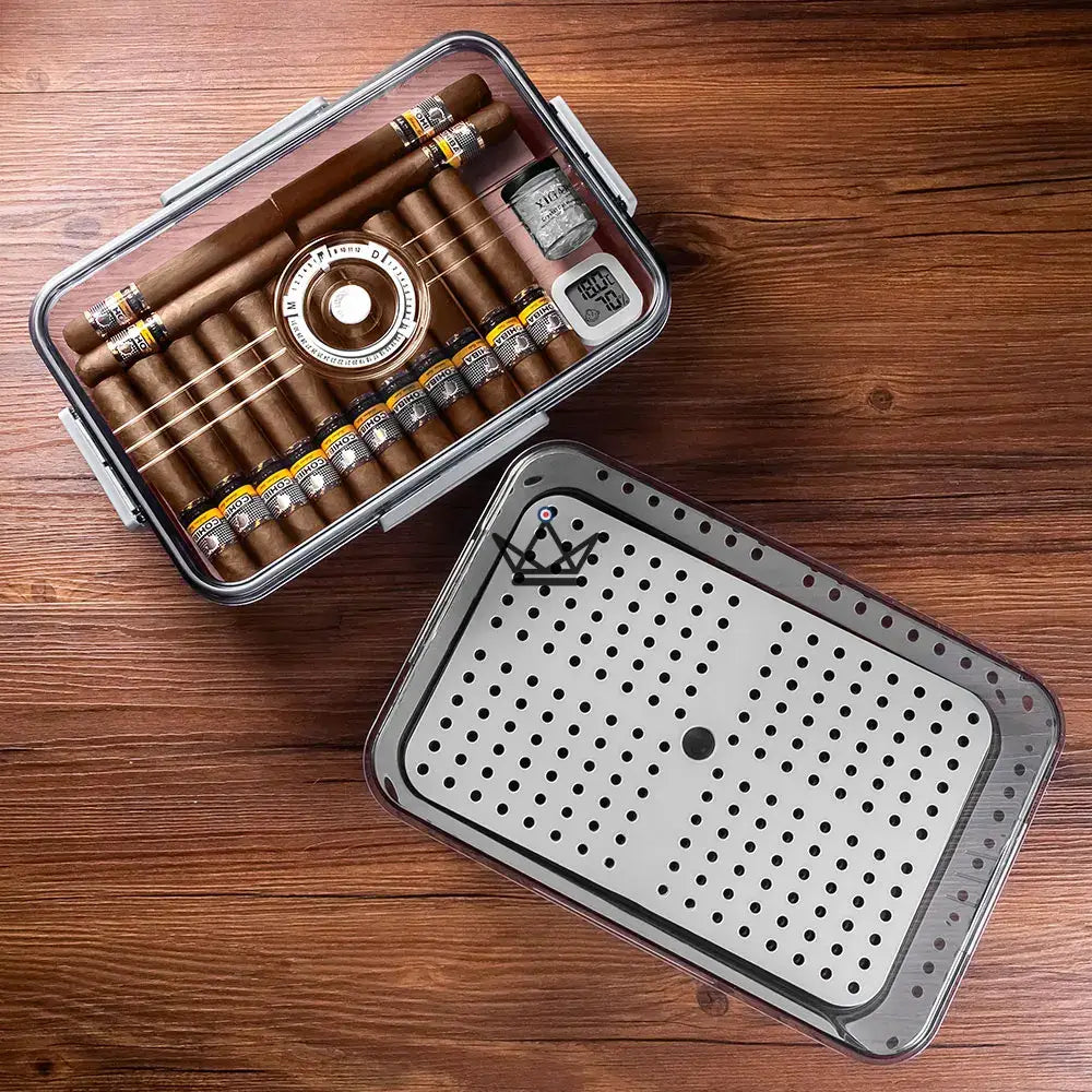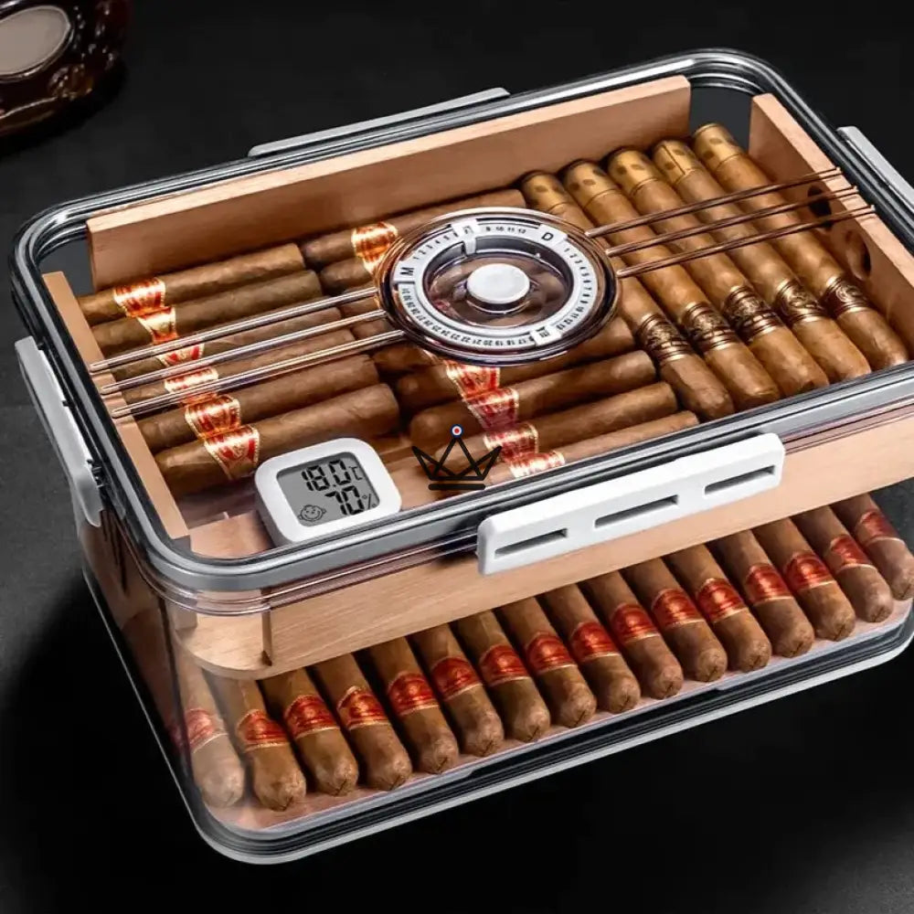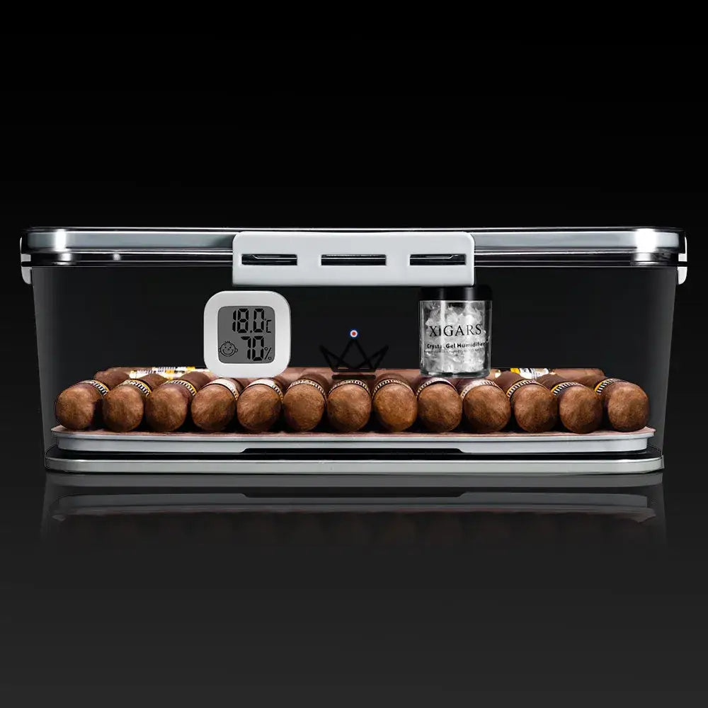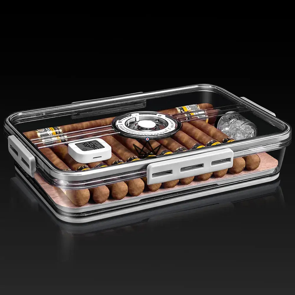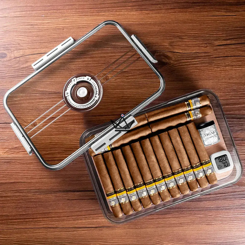 Découvrez la Cave à Cigare - CRYSTAL TIME, l'accessoire ultime pour conserver vos cigares dans des conditions optimales. Cette cave transparente, conçue en acrylique de haute qualité, offre une visibilité complète sur vos cigares tout en préservant leur saveur.