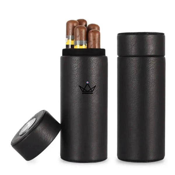 Cette cave à cigares arbore un design cylindrique élégant, ajoutant une touche de distinction à votre collection de cigares.