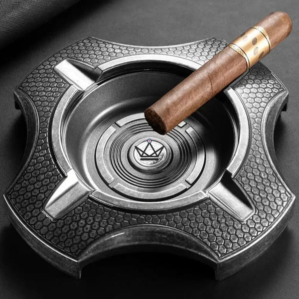Le nom "Stellar Quadrum" trouve son inspiration dans l’aspect cosmique de la forme étoilée (Stellar) et dans les quatre supports (Quadrum) qui entourent le cendrier. Ce mélange d’astronomie et de géométrie confère à cet accessoire un caractère à la fois intemporel et moderne, parfait pour les amateurs de cigares soucieux de chaque détail.