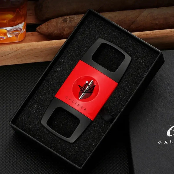 Disponible en rouge passion, jaune vibrant et noir classique, ce coupe-cigare haut de gamme offre une coupe précise en V, conçue pour les connaisseurs souhaitant une incision nette et un tirage optimal de leurs cigares.