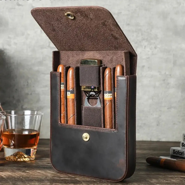 Découvrez l'excellence de l'Étui à Cigares en Cuir - Voyageur Quad, une pièce maîtresse pour tout connaisseur de cigares désireux de marier fonctionnalité et élégance sophistiquée.