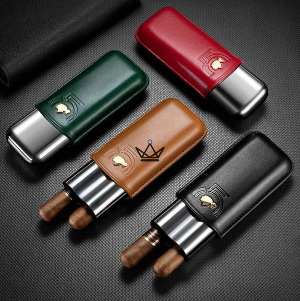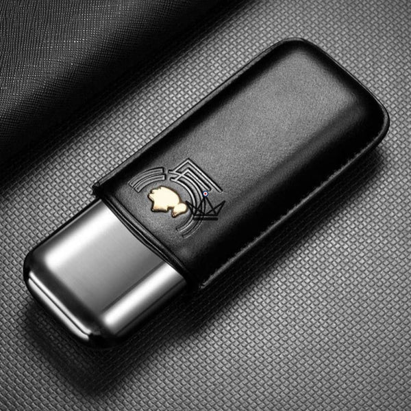Chaque pièce est embossée d’un motif artistique stylisé , apportant une touche distinctive et sophistiquée. Son intérieur sécurisé accueille deux cigares en maintenant leur intégrité, leur humidité et leur arôme, même en situation de mobilité.