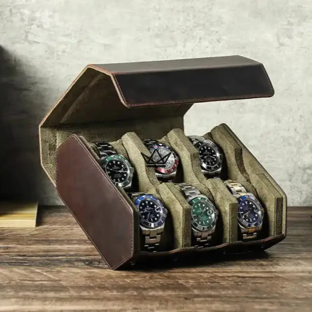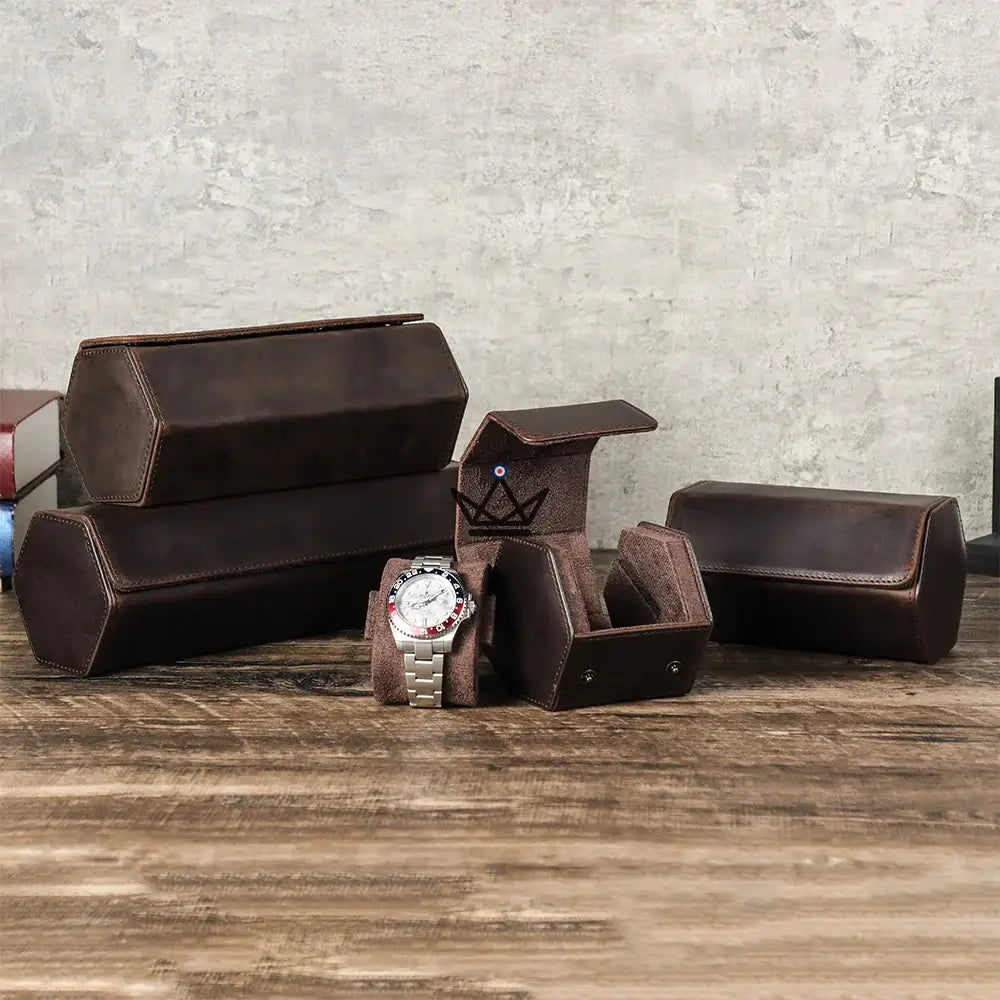 Alliant élégance, robustesse et praticité, chaque étui est confectionné en cuir véritable de haute qualité. Son design hexagonal distinctif en fait un accessoire à la fois fonctionnel et esthétique, parfait pour protéger et transporter vos montres de luxe en toute sécurité.