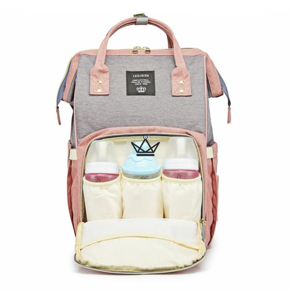 Il est composé de plusieurs poches très pratiques, permettant de transporter tout le nécessaire au bien être de votre enfant (couches, biberon, serviette, jouet...) !
