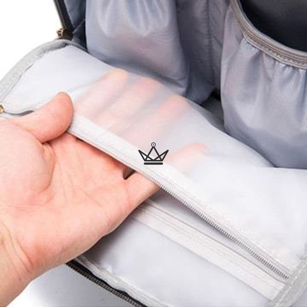 L'intérieur du sac KABOUM est doublé d'un tissu waterproof. Aucun liquide ne traversera votre sac et tout ce que vous transportez pour prendre soin de bébé restera protégé.