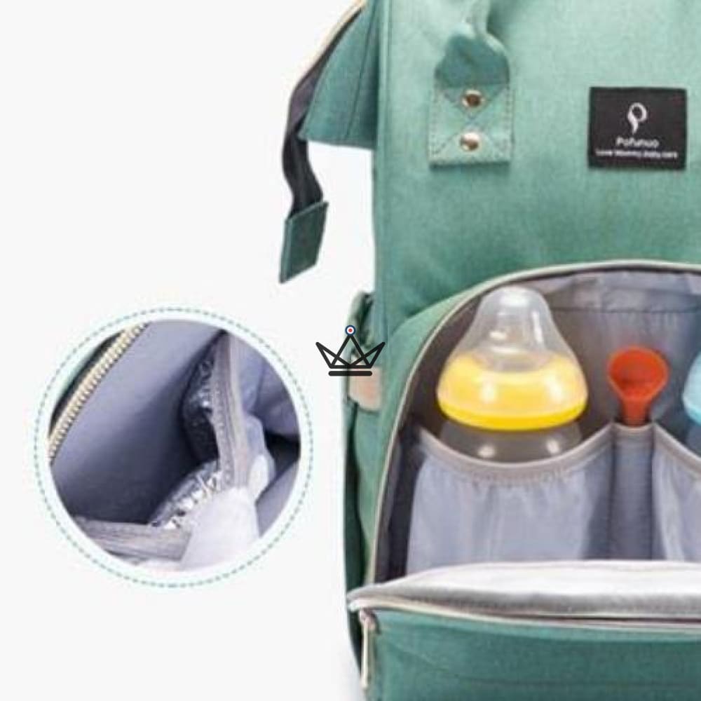 La poche de devant peut contenir vos biberons à température grâce à son revêtement isotherme. Où que vous soyez, vous pouvez fournir à votre bébé un biberon à température idéale.