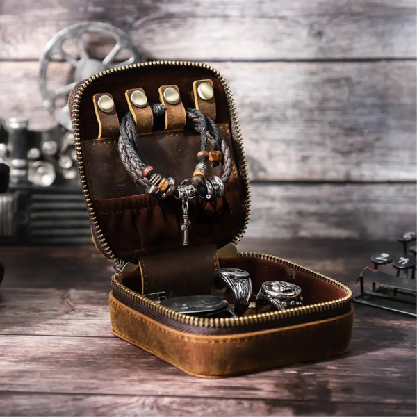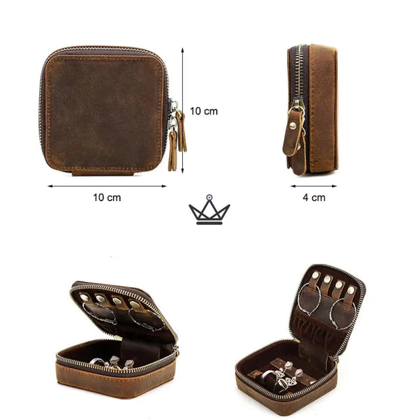 Entdecken Sie Voyageur Nova , die Schmuckschatulle aus Vollnarbenleder, entworfen für stilbewusste Reisende und Liebhaber edler Stücke. Kompakt, robust und elegant schützt sie Ihre Uhren, Ringe, Halsketten und Armbänder auf Reisen stilvoll.